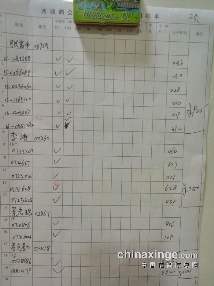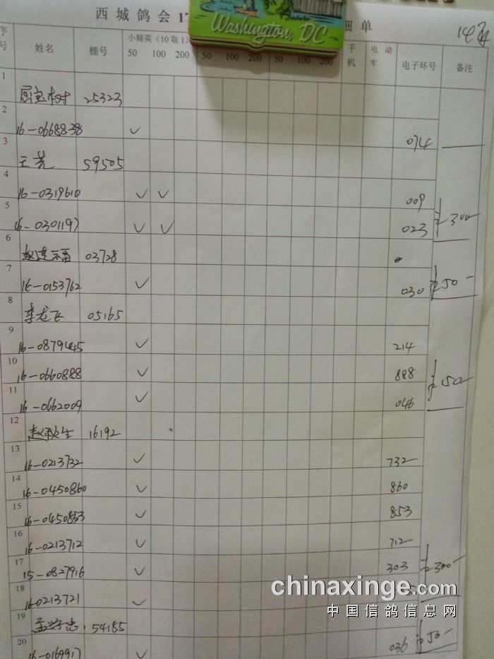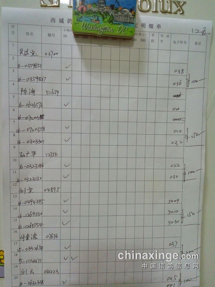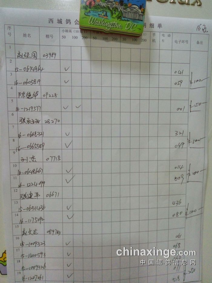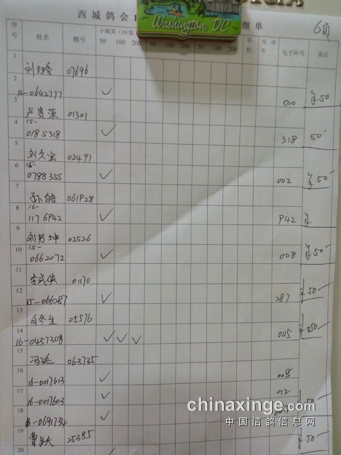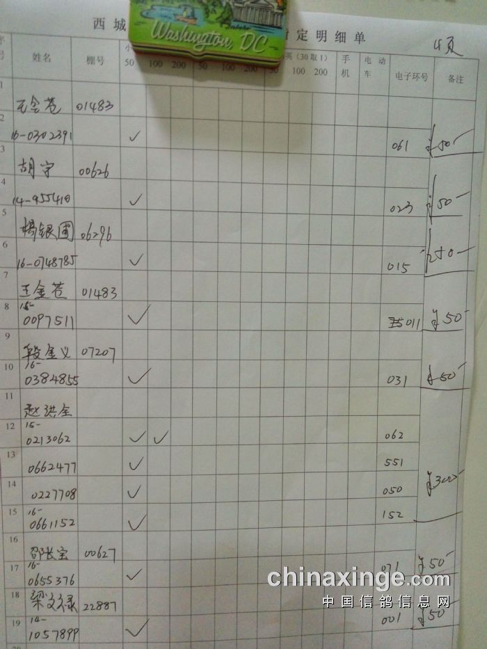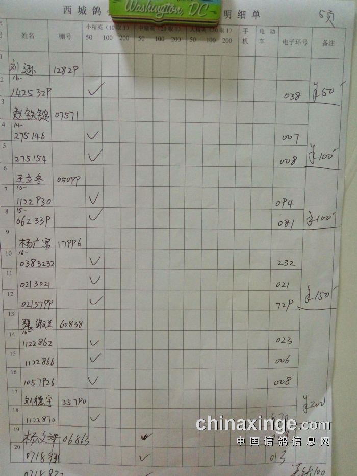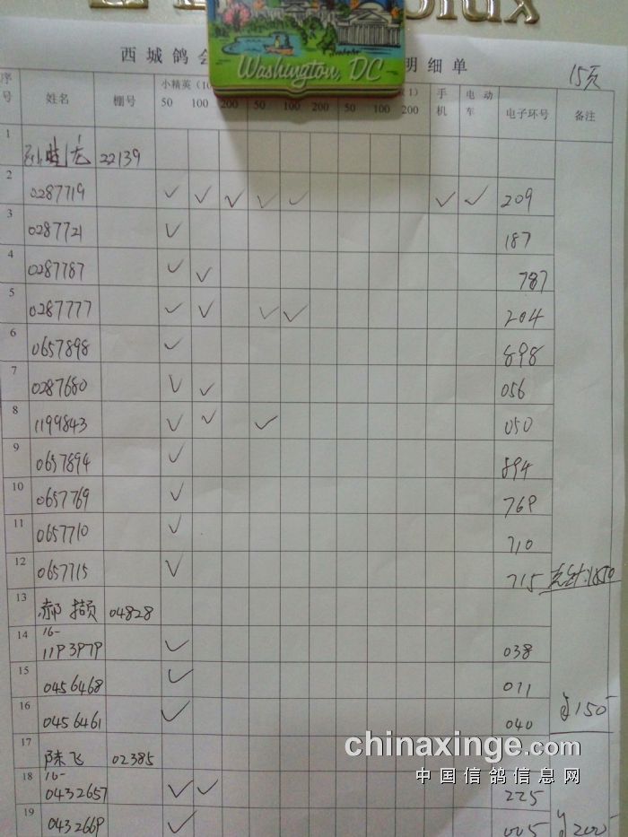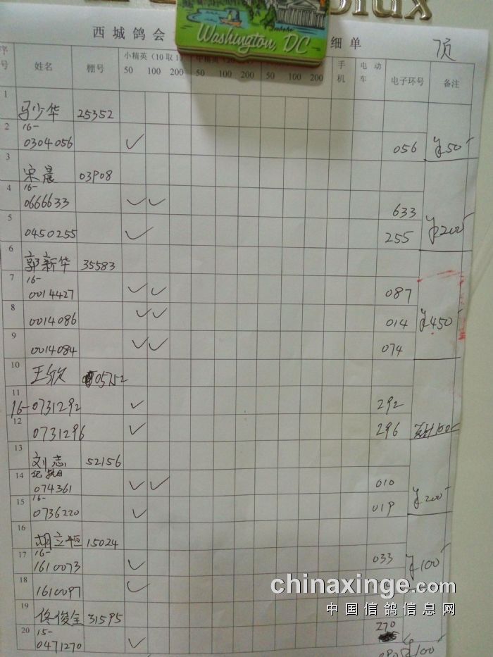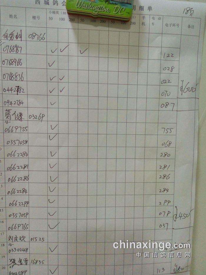 中精英、50元12羽、100元6羽、电动车2羽、手机1羽