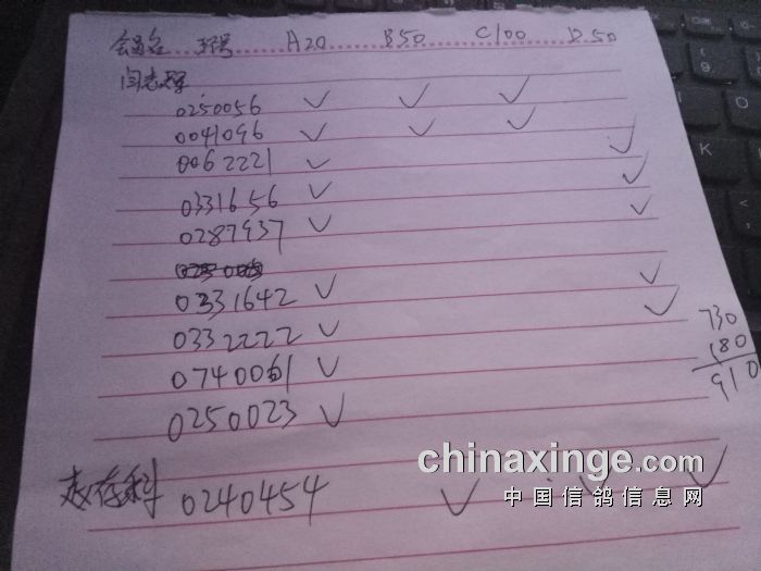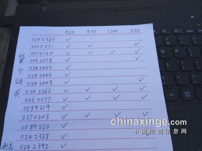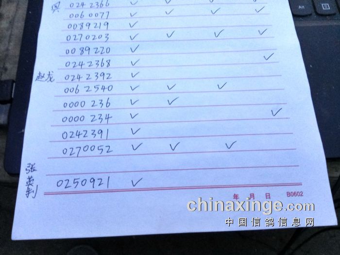 大曹庄鸽会25年秋380公里扶沟集鸽清单