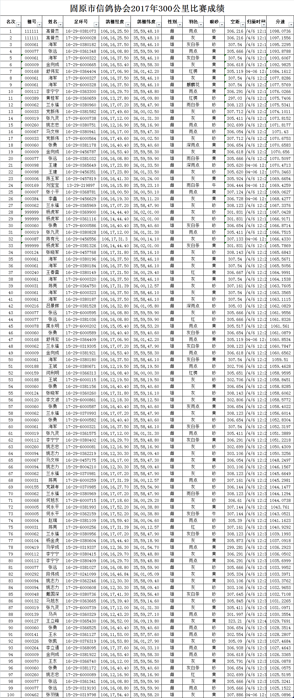 固原市信鸽协会2017年春季300公里比赛