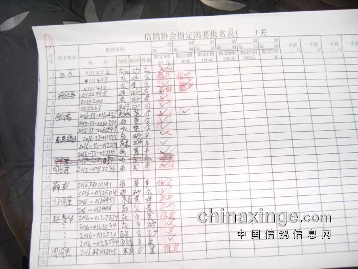 2017年春200公里同发站指定鸽原始单据