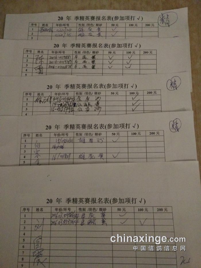 廊坊市区2017年春季300公里精英赛报名表(以原始单为准)