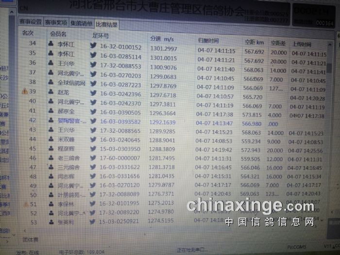 公告:17年春季600公里河南信阳比赛成绩公告,鸽会为保证比赛的公平公正,防止部分参赛人员作弊等手段,比赛直播鸽会延时观看直播。
