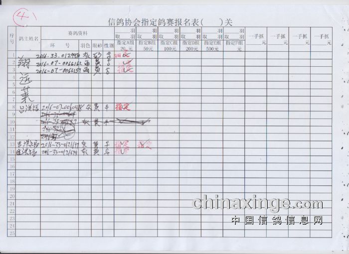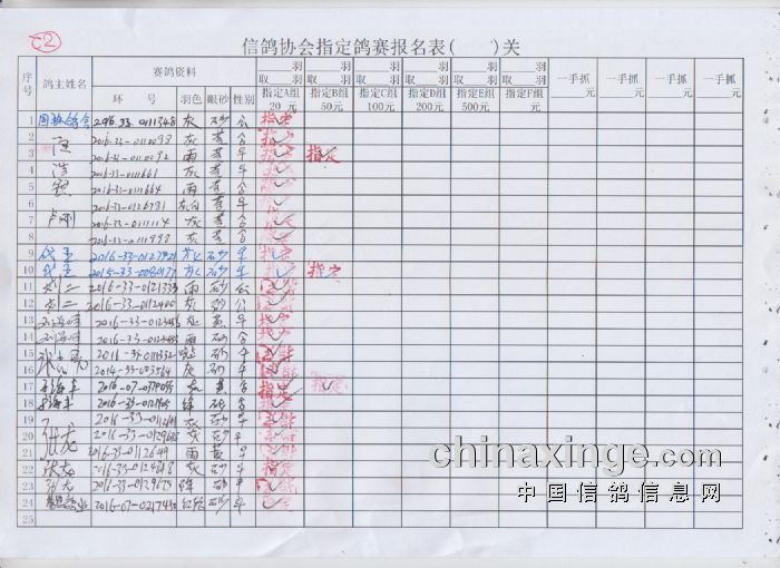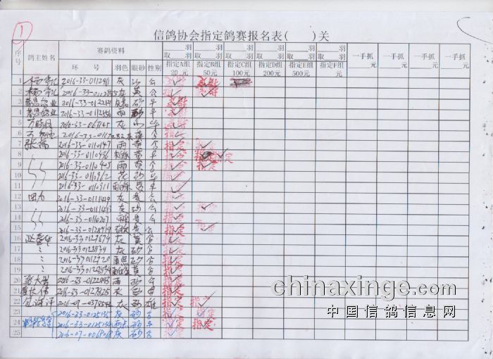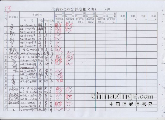 2017年春季300公里扎鲁特旗站指定鸽原始单据