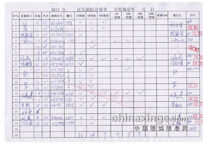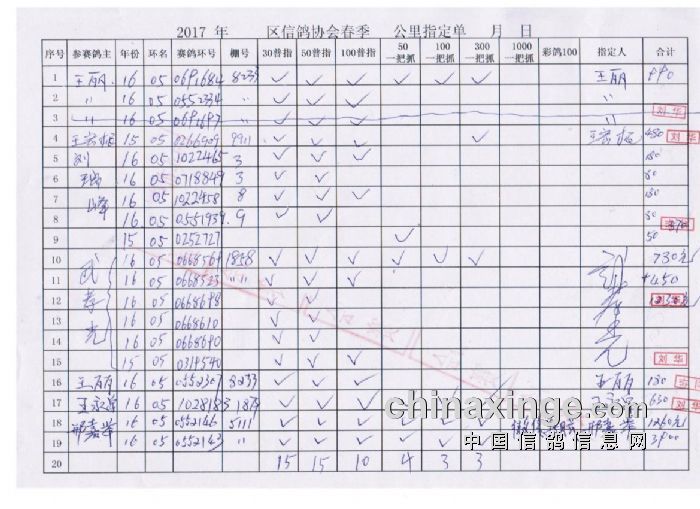青山区信鸽协会2017年春季400公里第二关指定明细