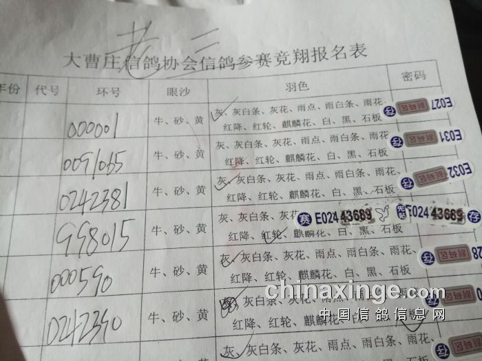 大曹庄鸽会25年秋220、280、340、380、500公里五关鸽王临时成绩