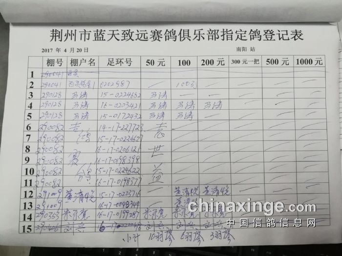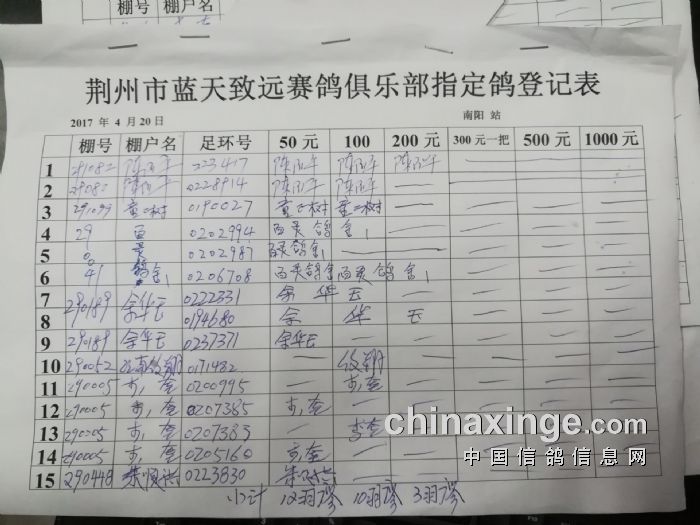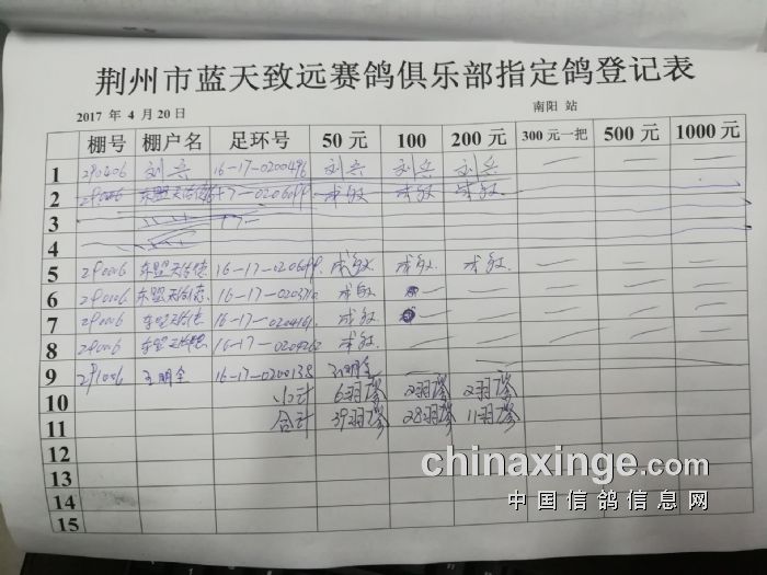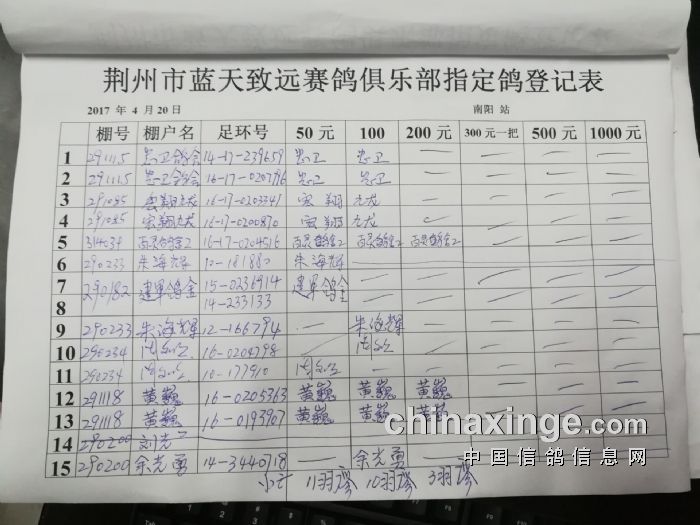 2017年11月26日480公里新郑站年度王中王比赛集鸽清单