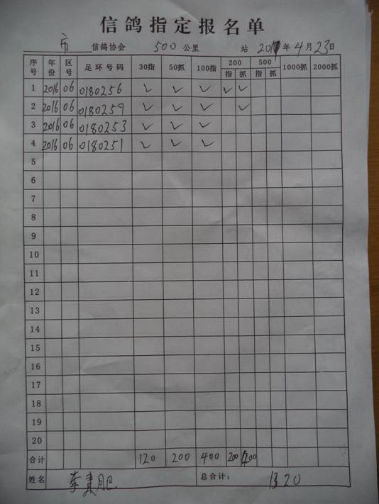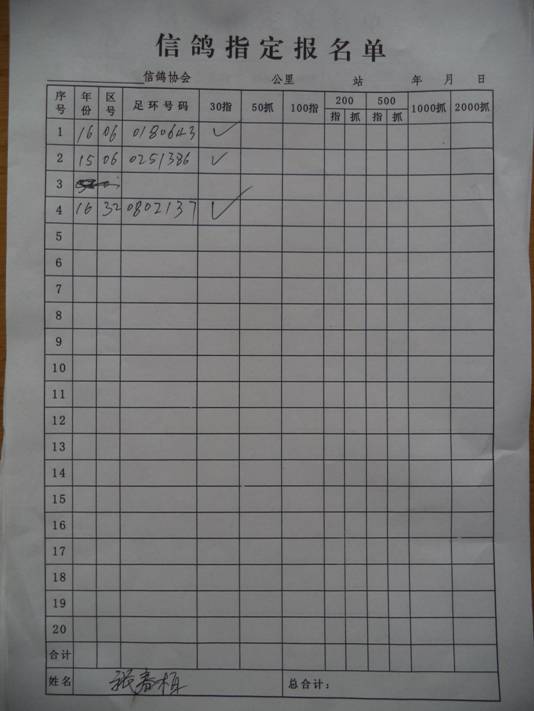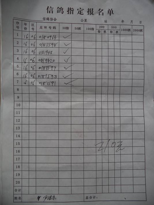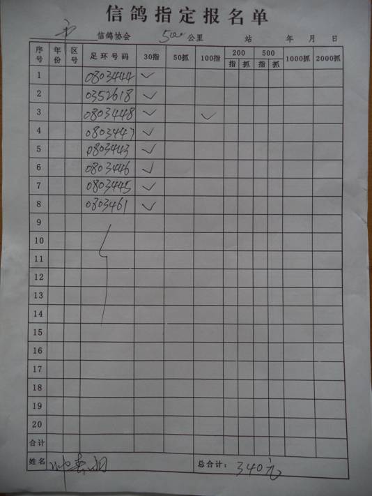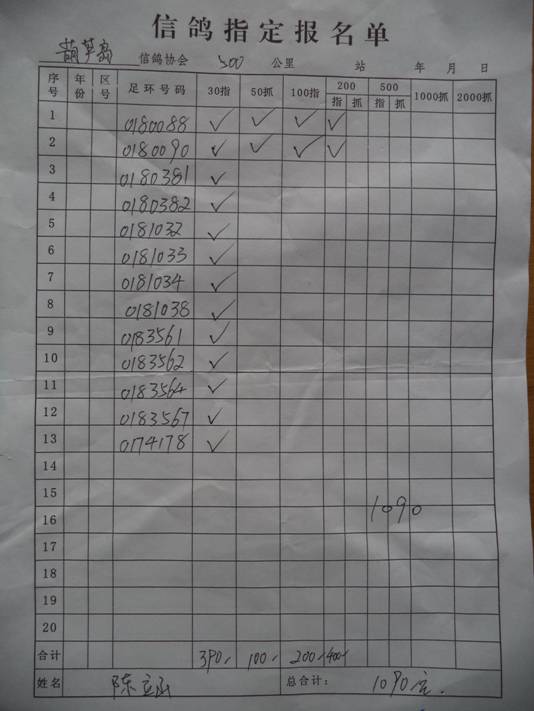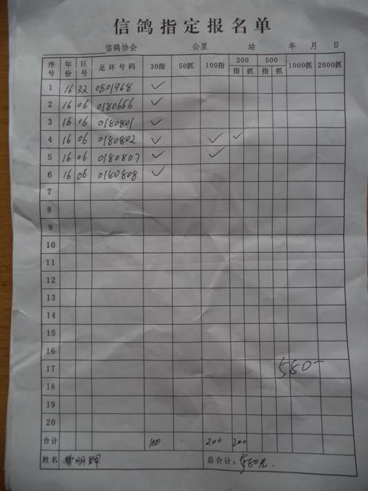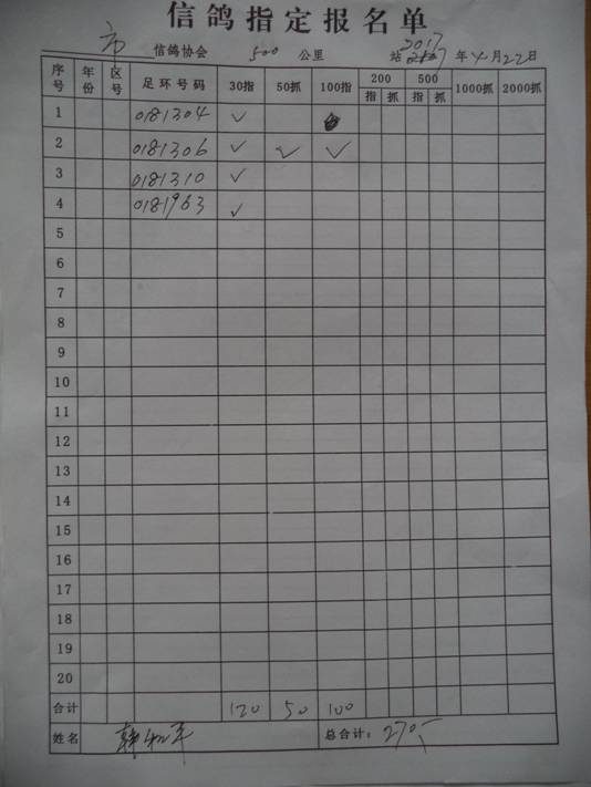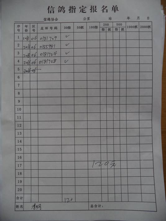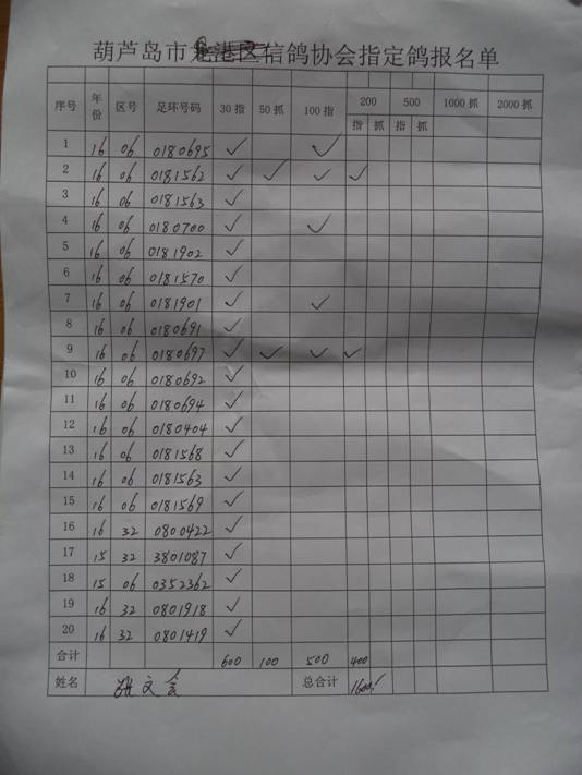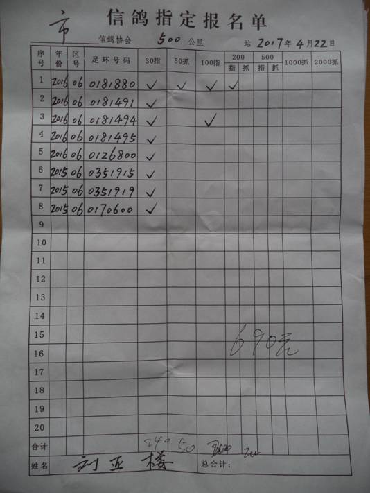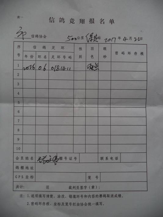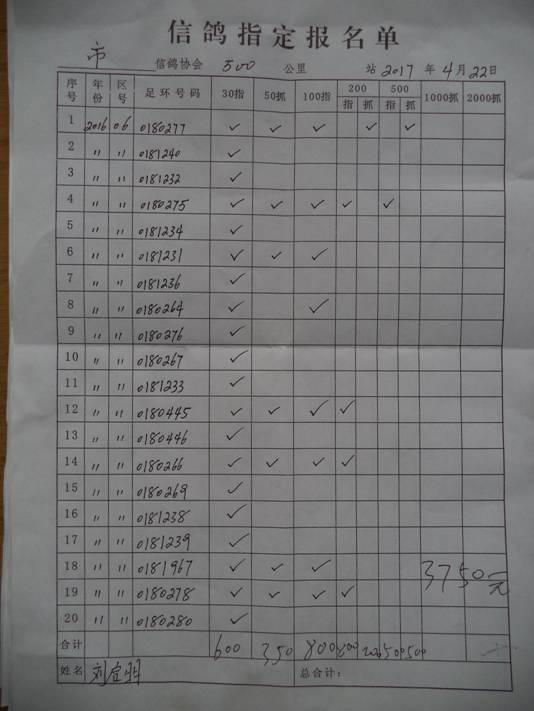 2017春大奖赛第一关指定鸽名单2