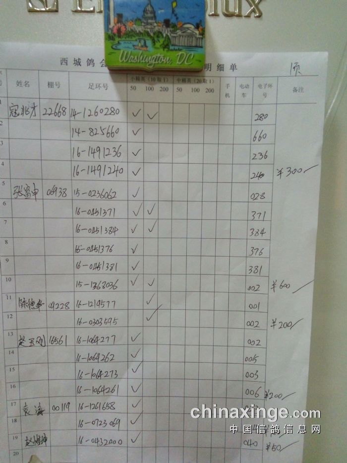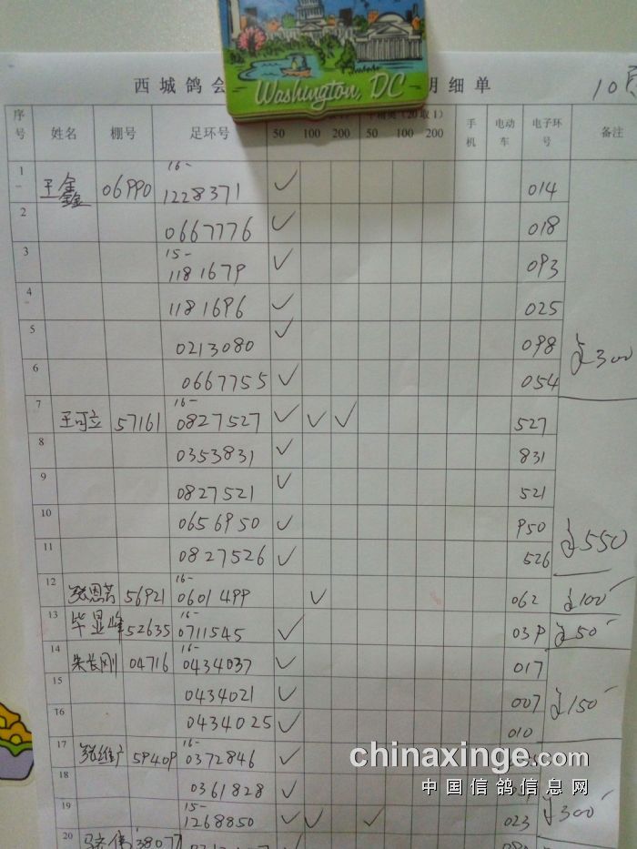 西城鸽会500特比第二关北区临时成绩