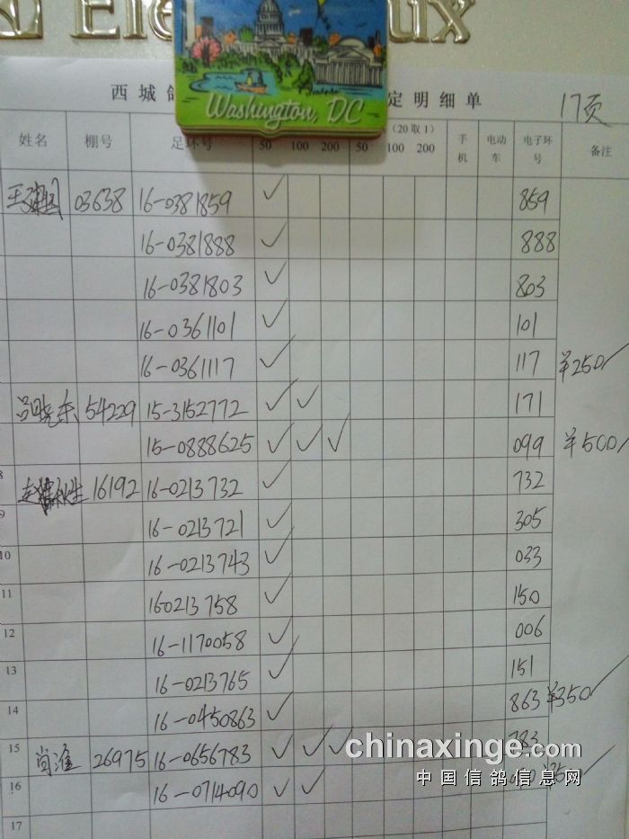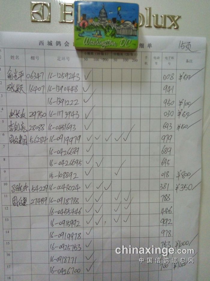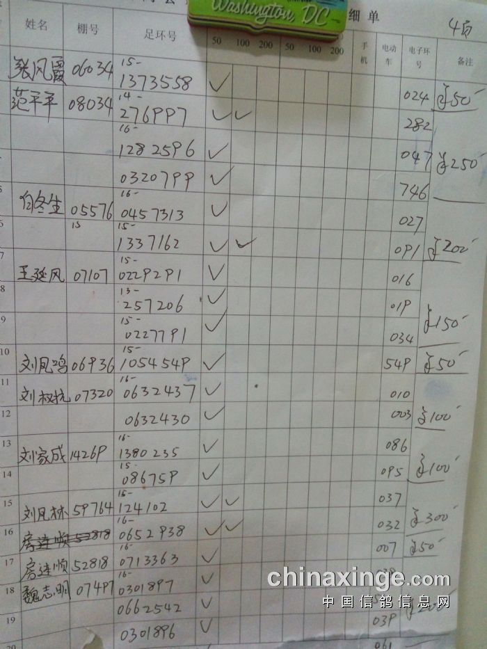 中精英、50元28羽、100元10羽、200元1羽、手机3羽、电动车2羽