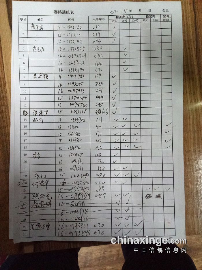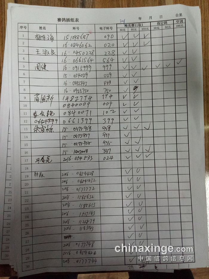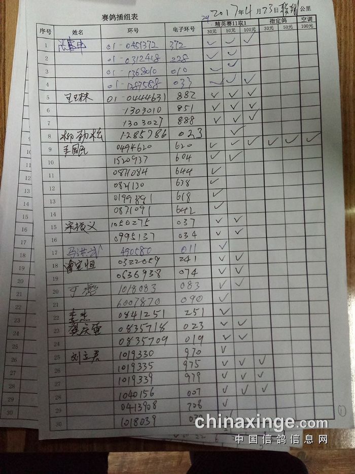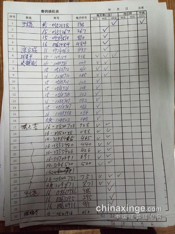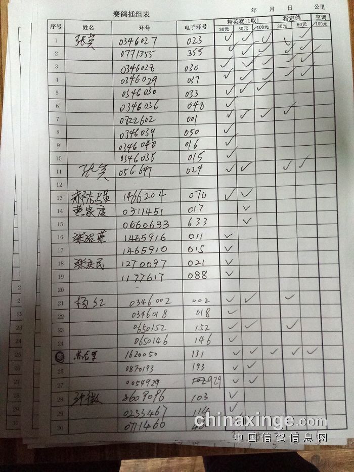 25年大兴“金洲杯”100环一关有效归巢(按人名)