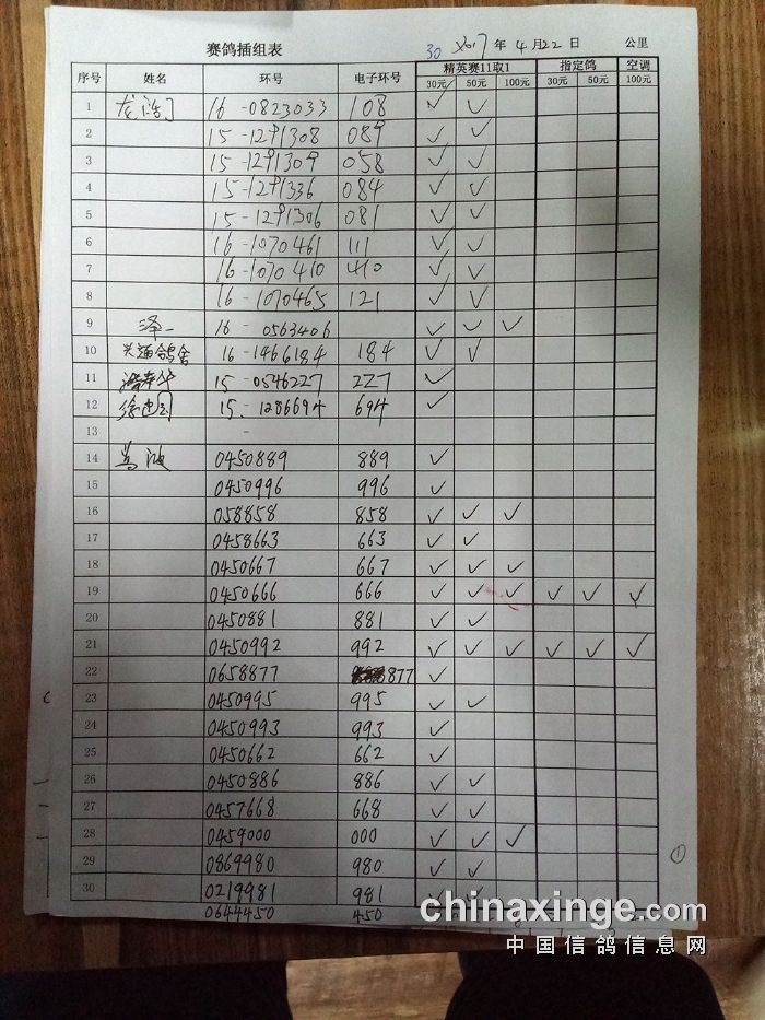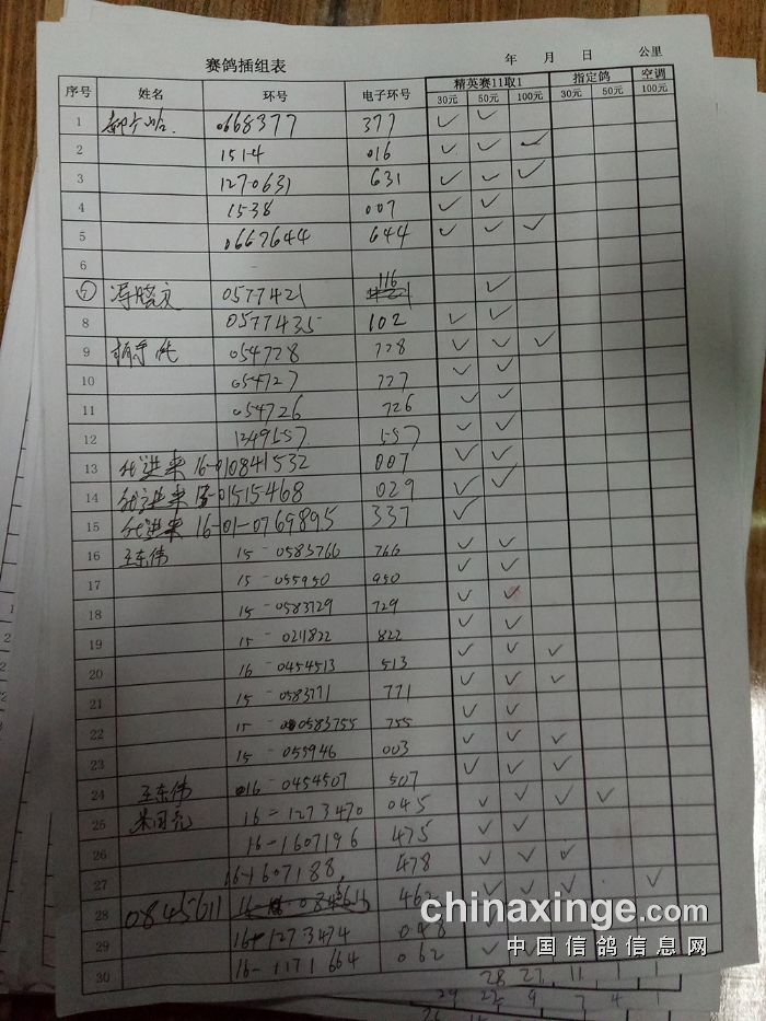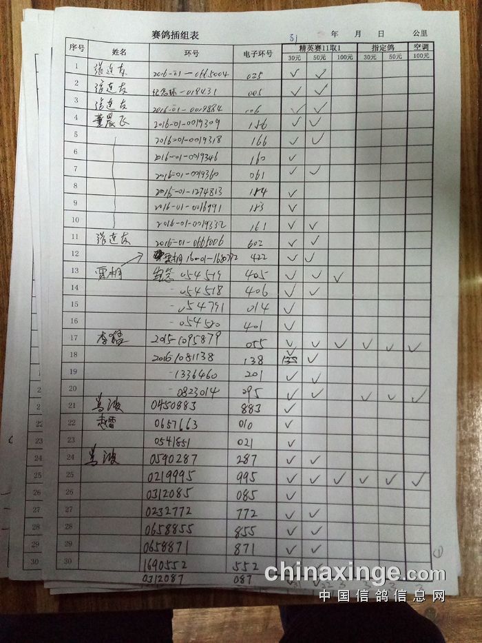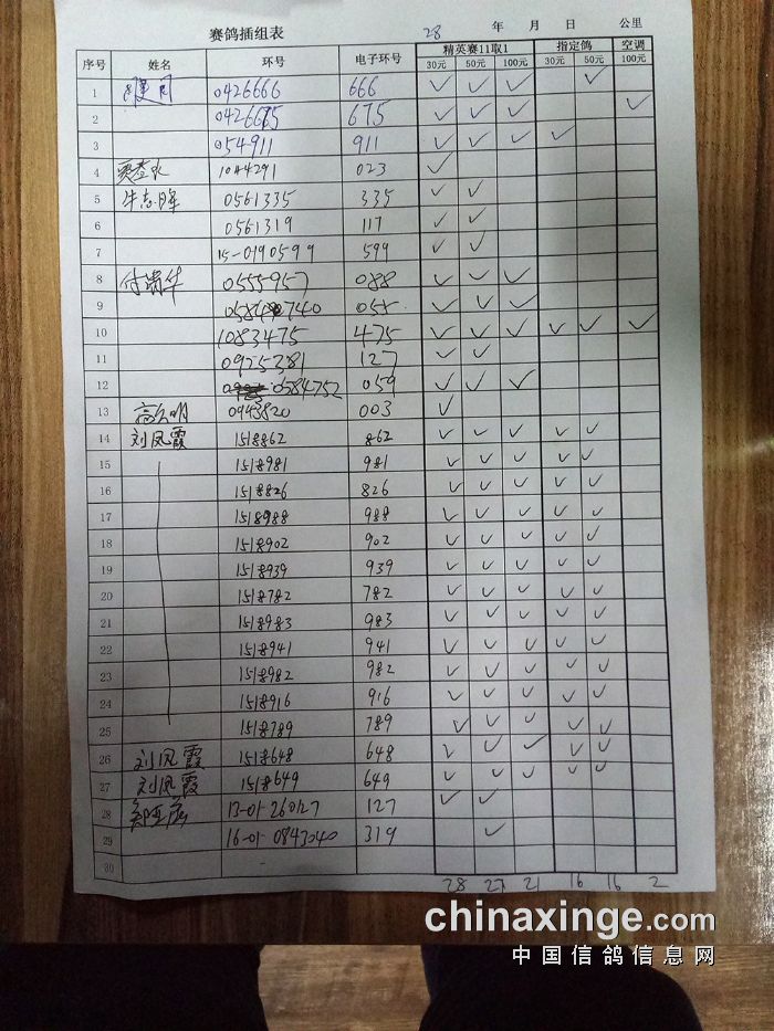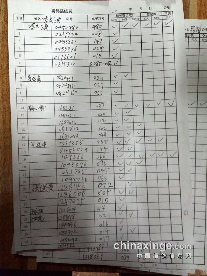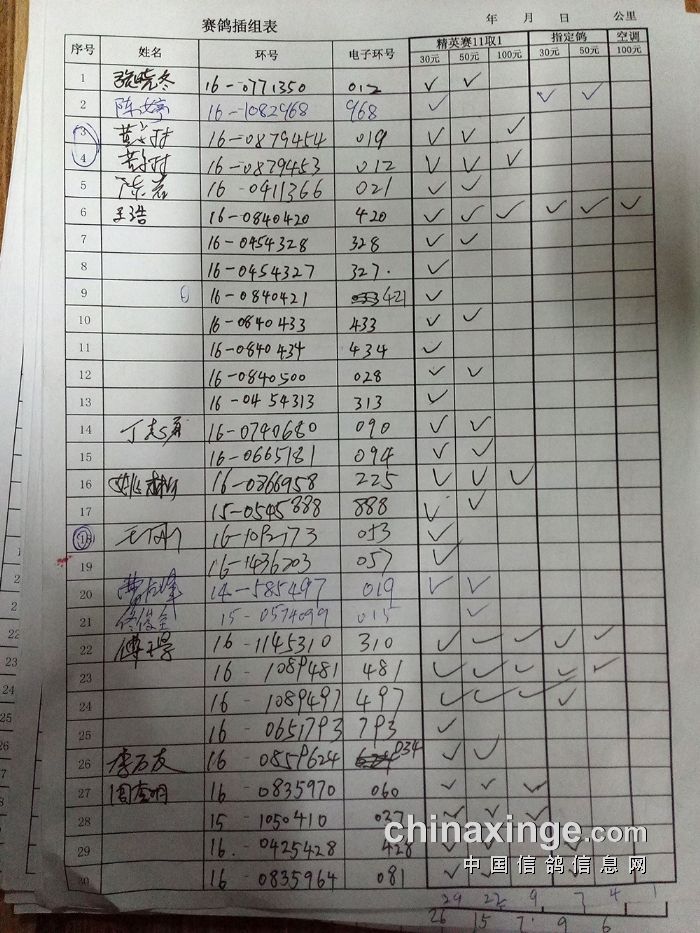 25年大兴“金洲杯”千元环一关有效归巢(按棚号)