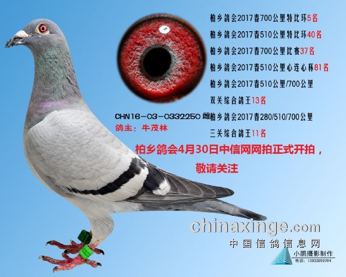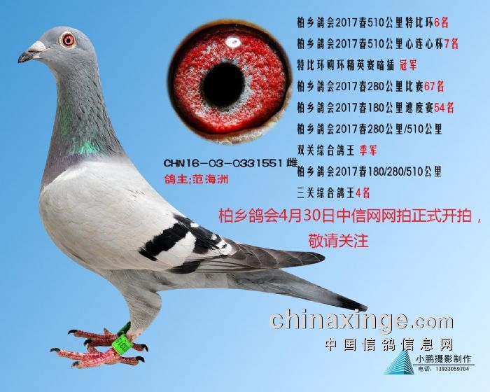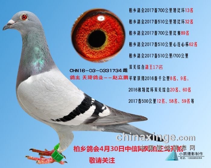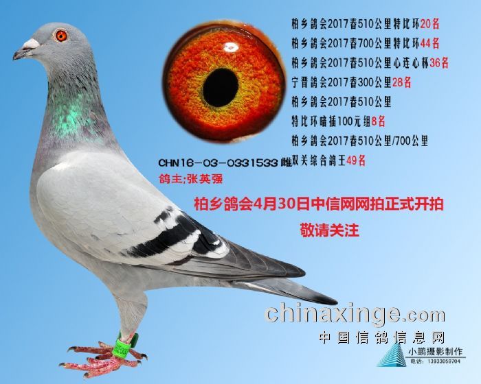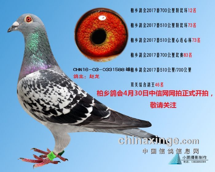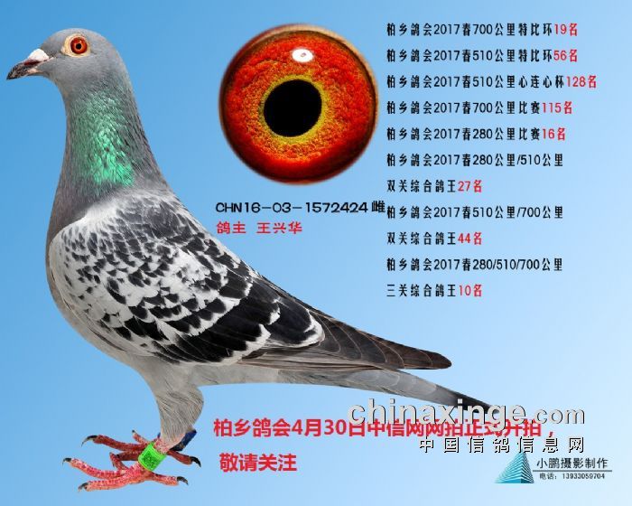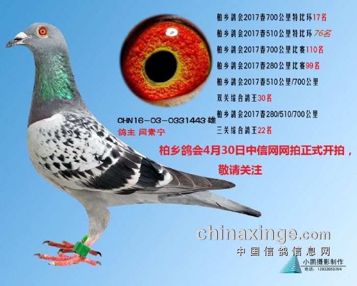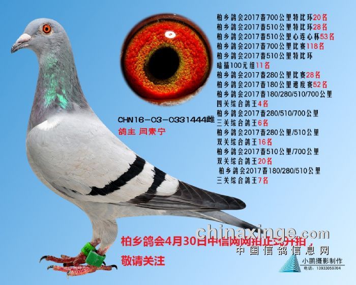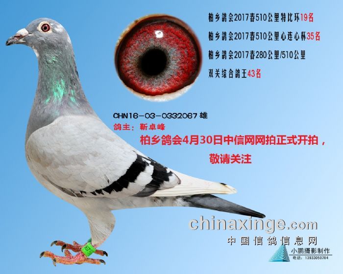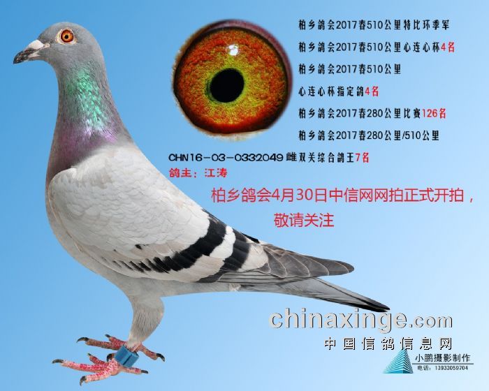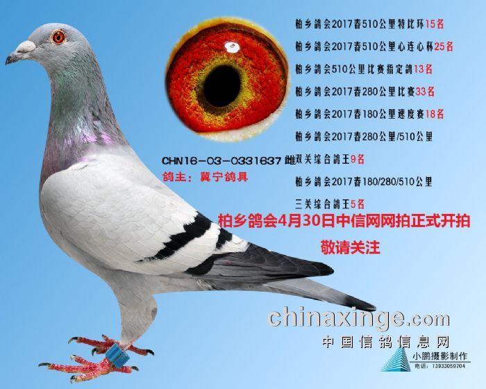 柏乡鸽会2017春优胜鸽定于4月30日在中信网柏乡信鸽协会网站拍卖平台进行网拍。敬请关注!!!