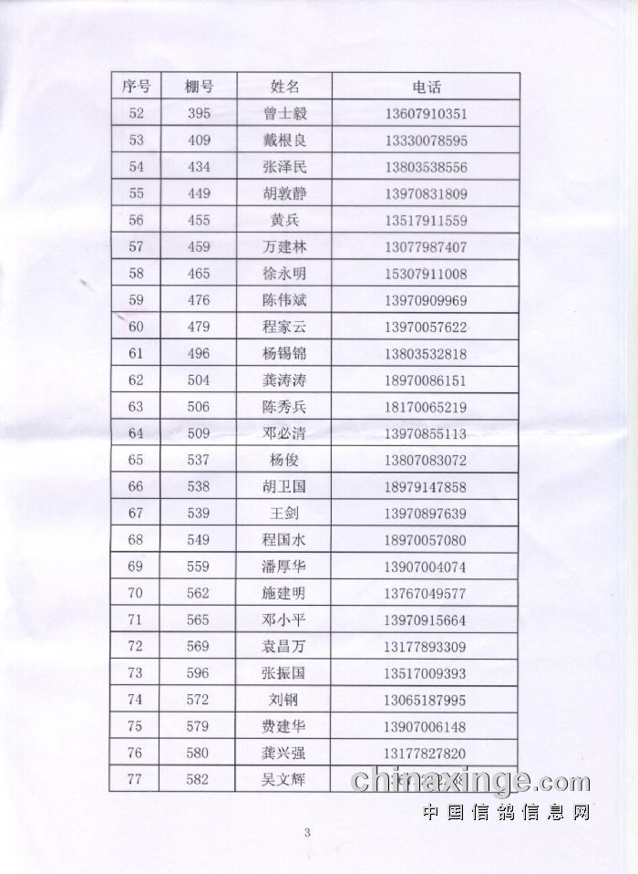 南昌市信鸽协会春季三关鸽王综合赛成绩