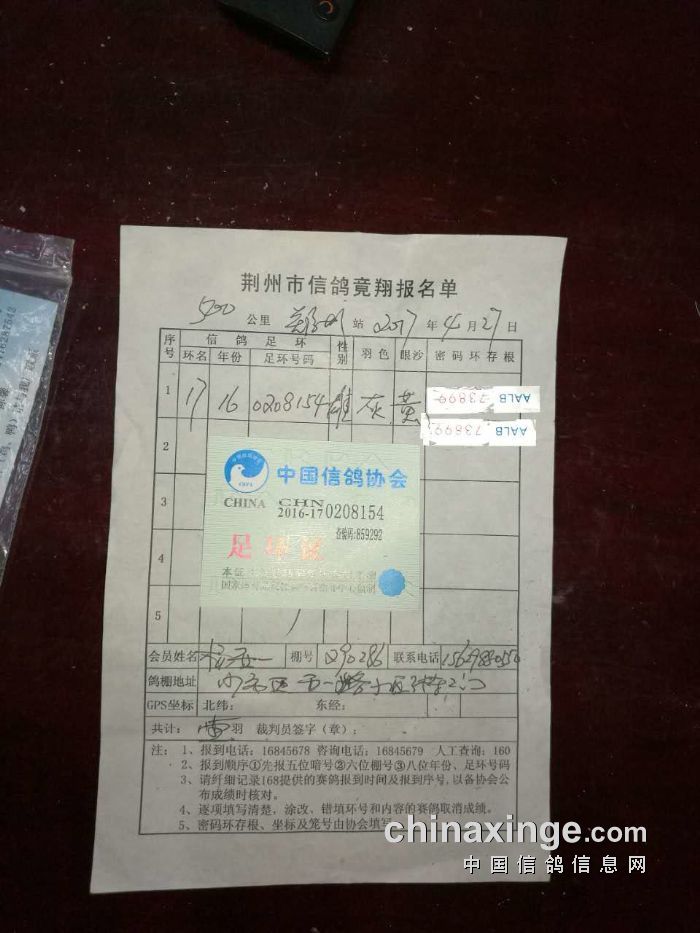 2017年11月26日480公里新郑站年度王中王比赛集鸽清单