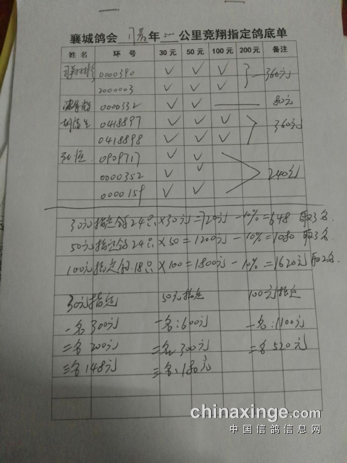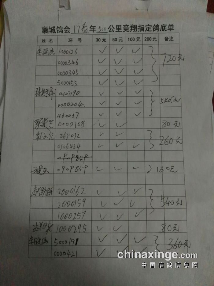 襄城信鸽协会25年秋季第三关510公里湖南南县比赛集鸽清单