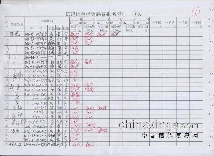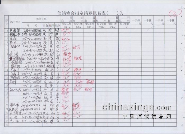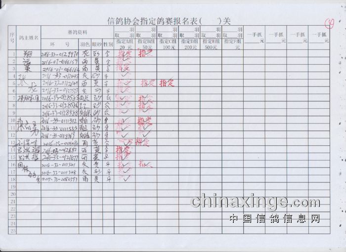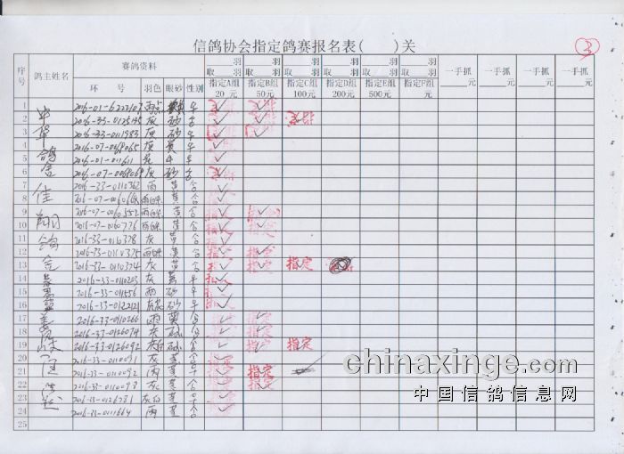 2017年春季500公里巴林右旗站指定鸽原始单据