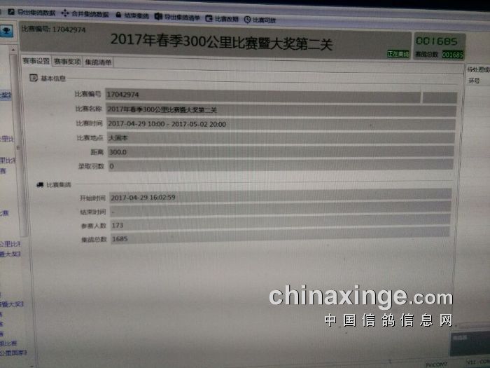 2017年春季300公里比赛暨大奖第二关集鸽