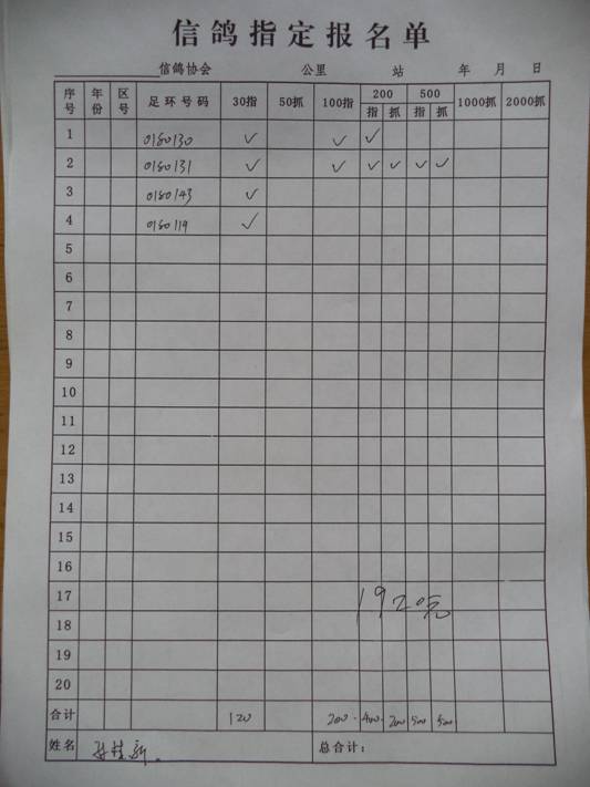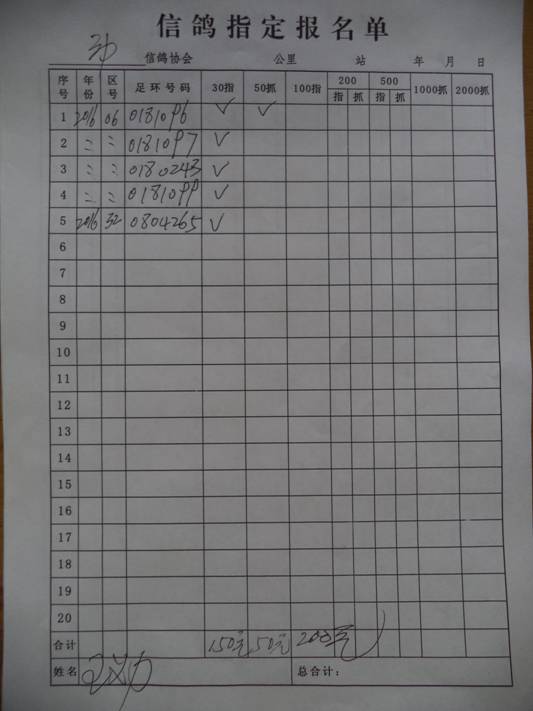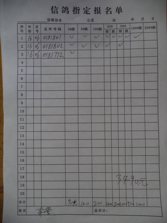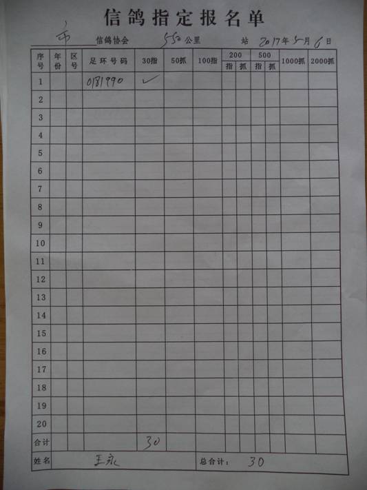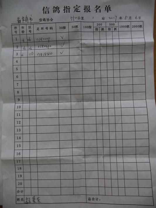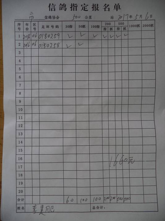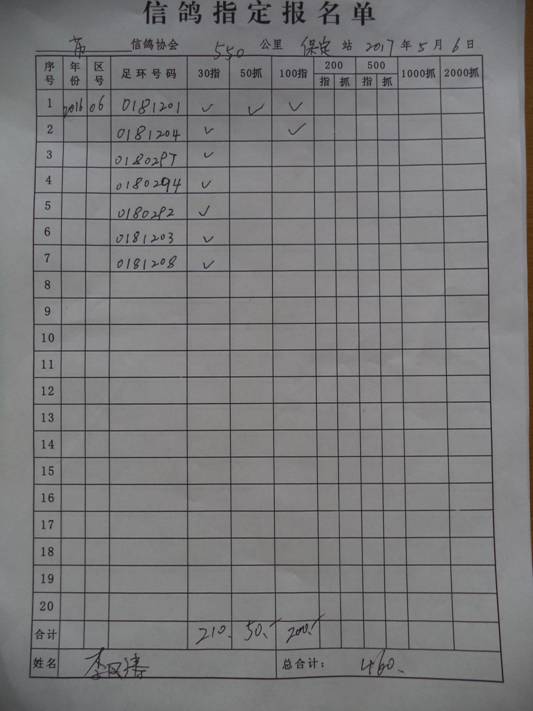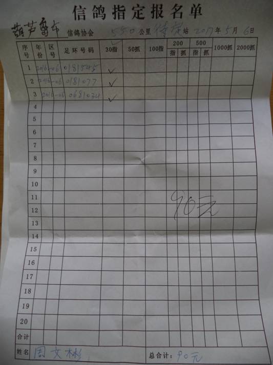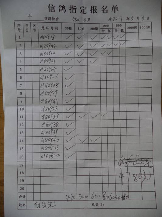 2017春大奖赛第三关指定鸽名单2