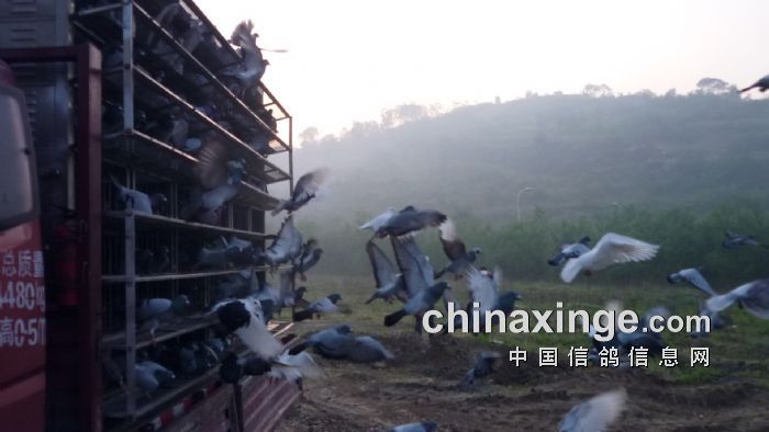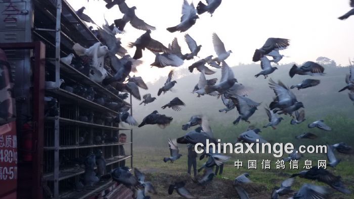 勉县开笼现场图片,由勉县铁路鸽协监放。