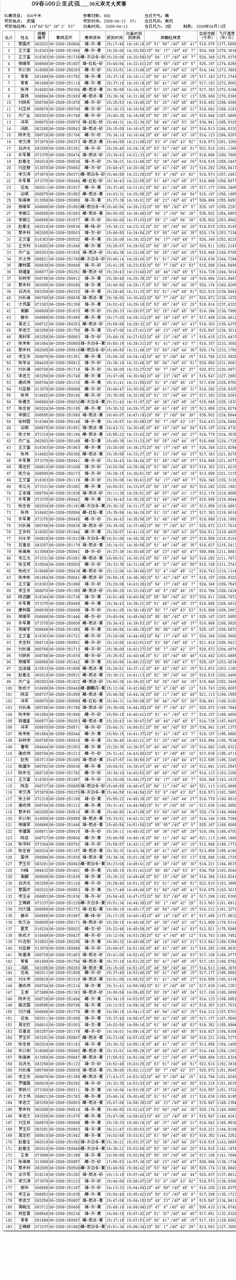 09年4月12日 500公里 30大奖成绩1-183
