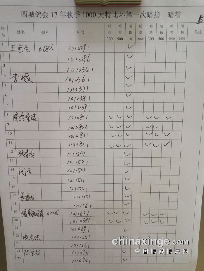 西城鸽会2017年1000特比环第次一暗插,暗精照片。