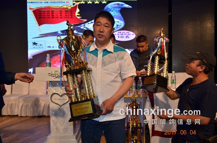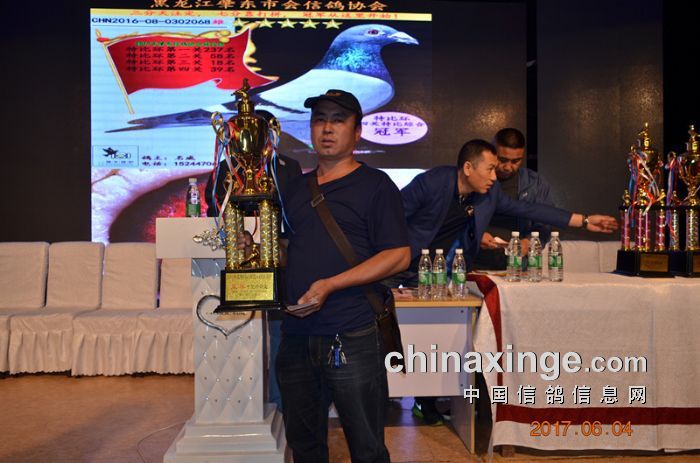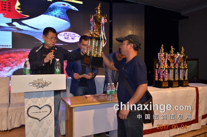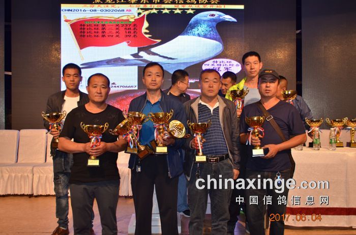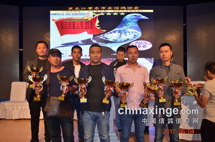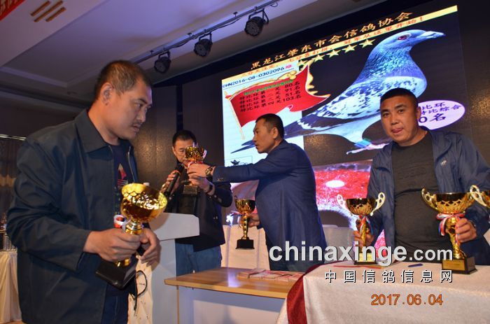 黑龙江省肇东市信鸽协会2017年春季四关综合颁发奖杯奖金照片