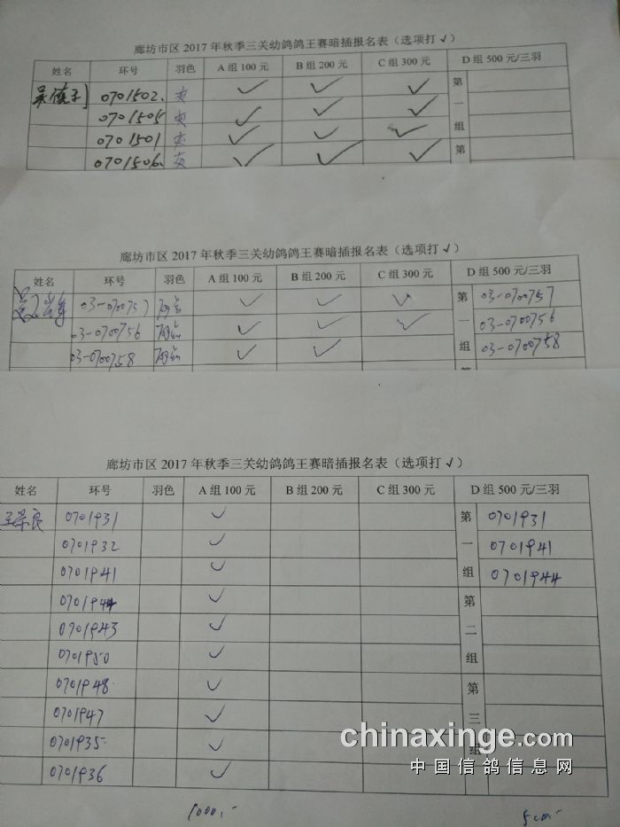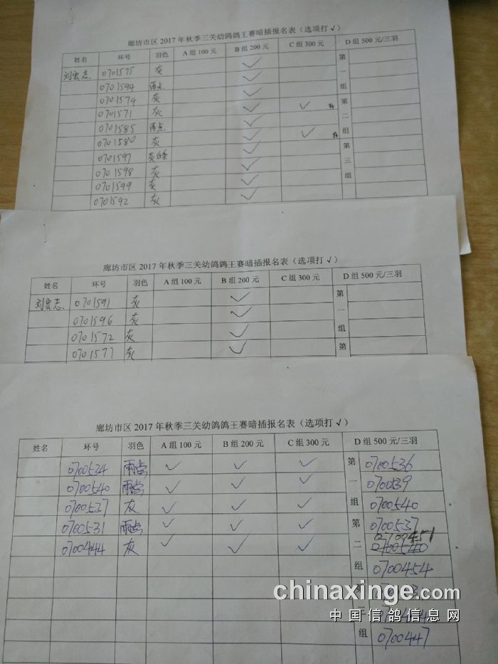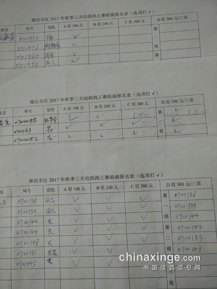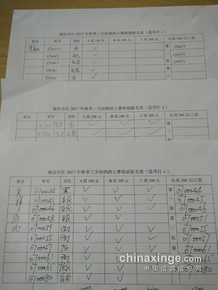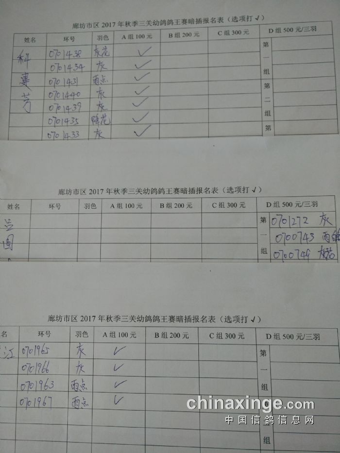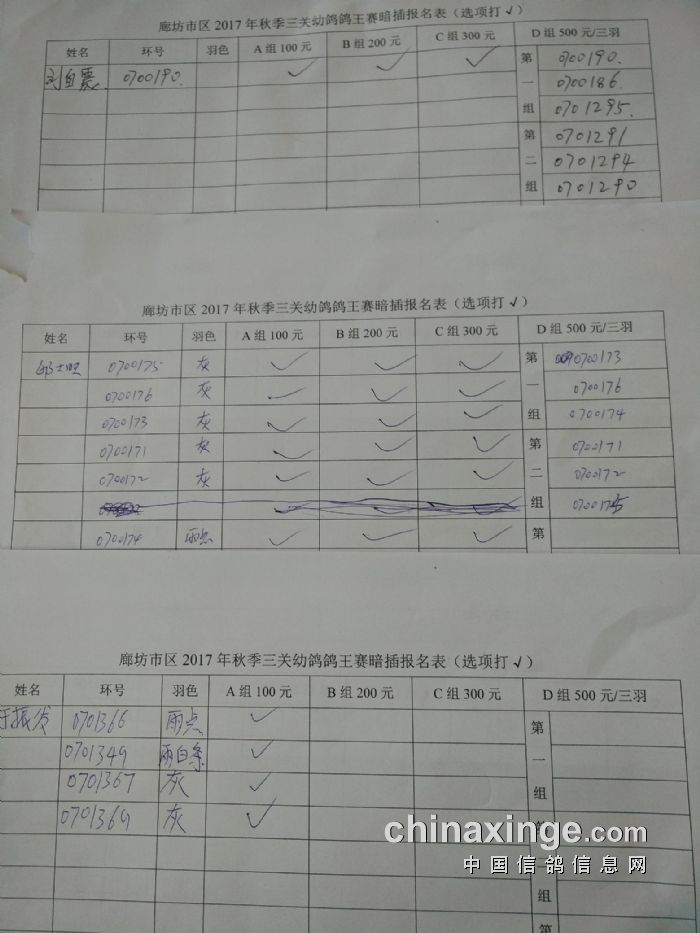 廊坊信鸽协会200公里比赛集鸽清单