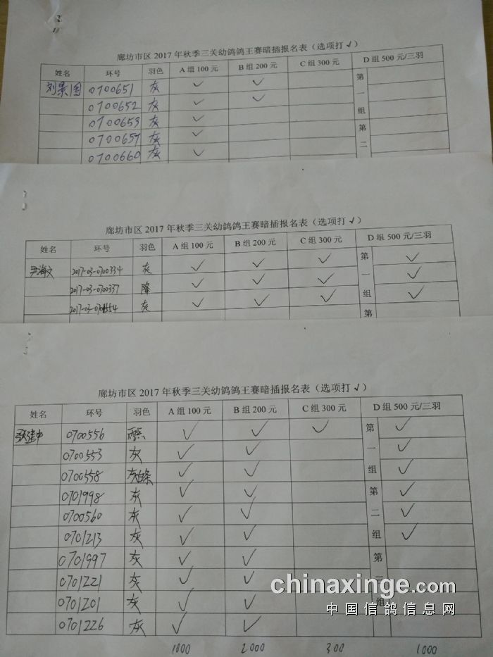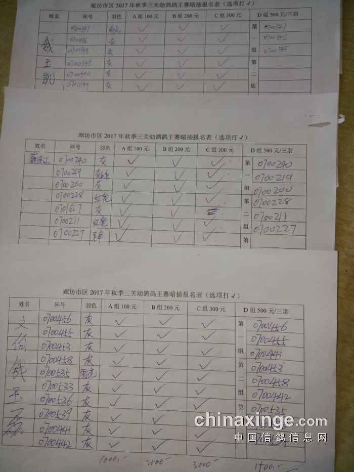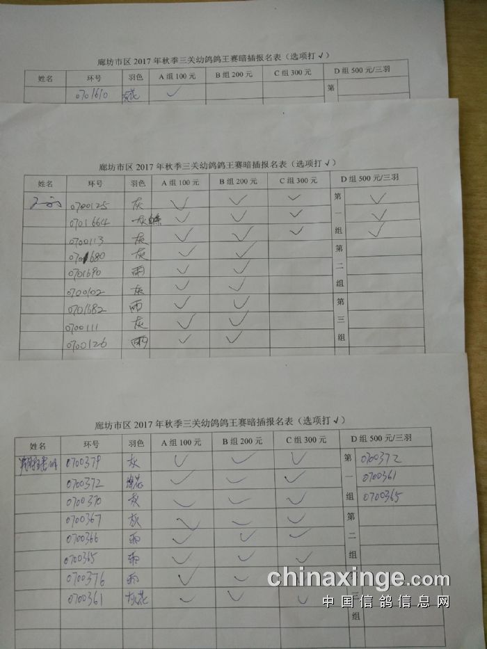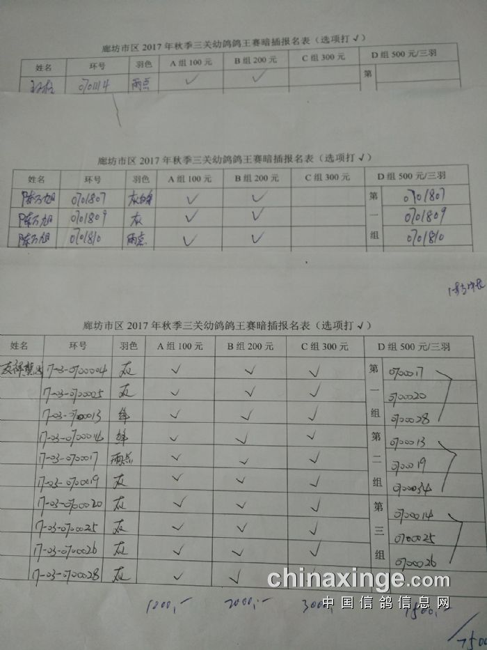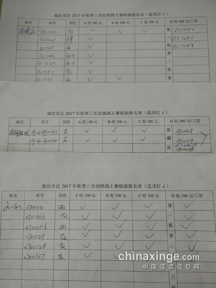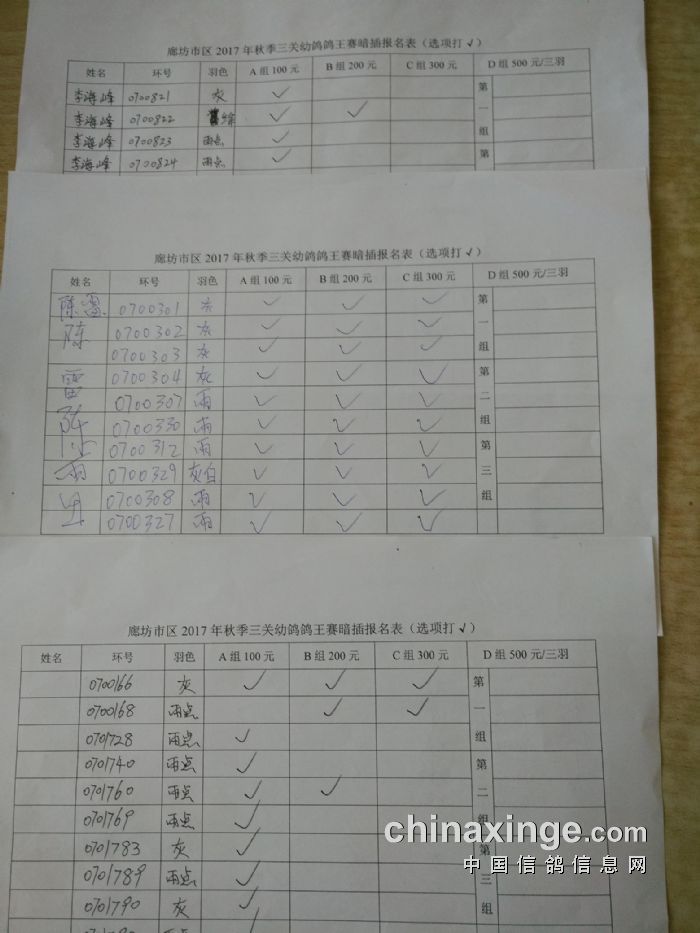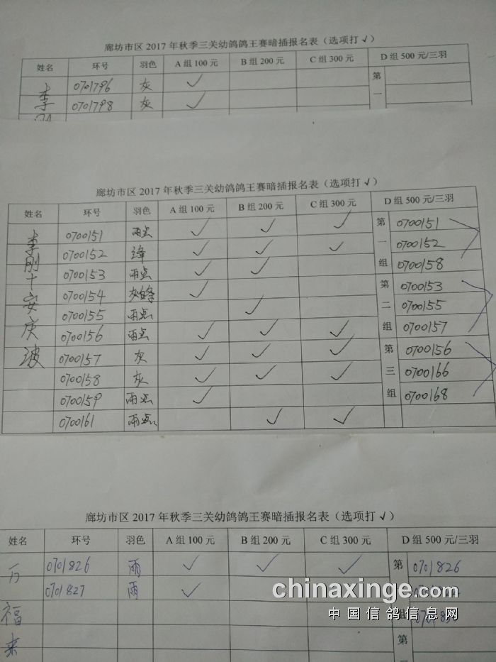 廊坊信鸽协会200公里比赛集鸽清单