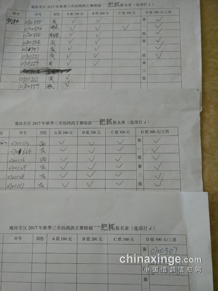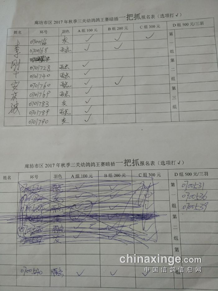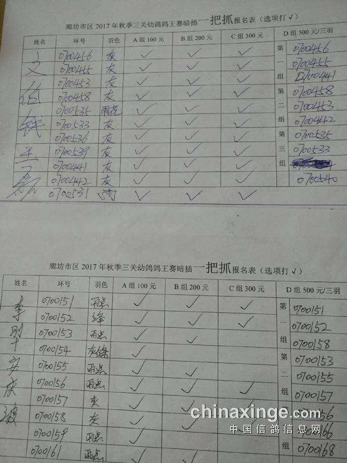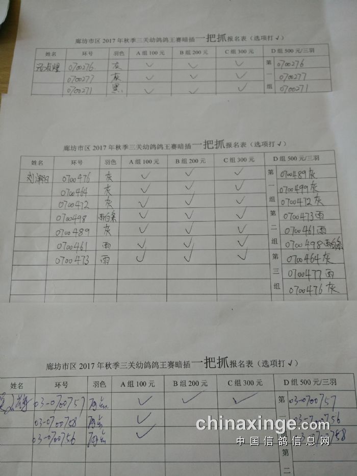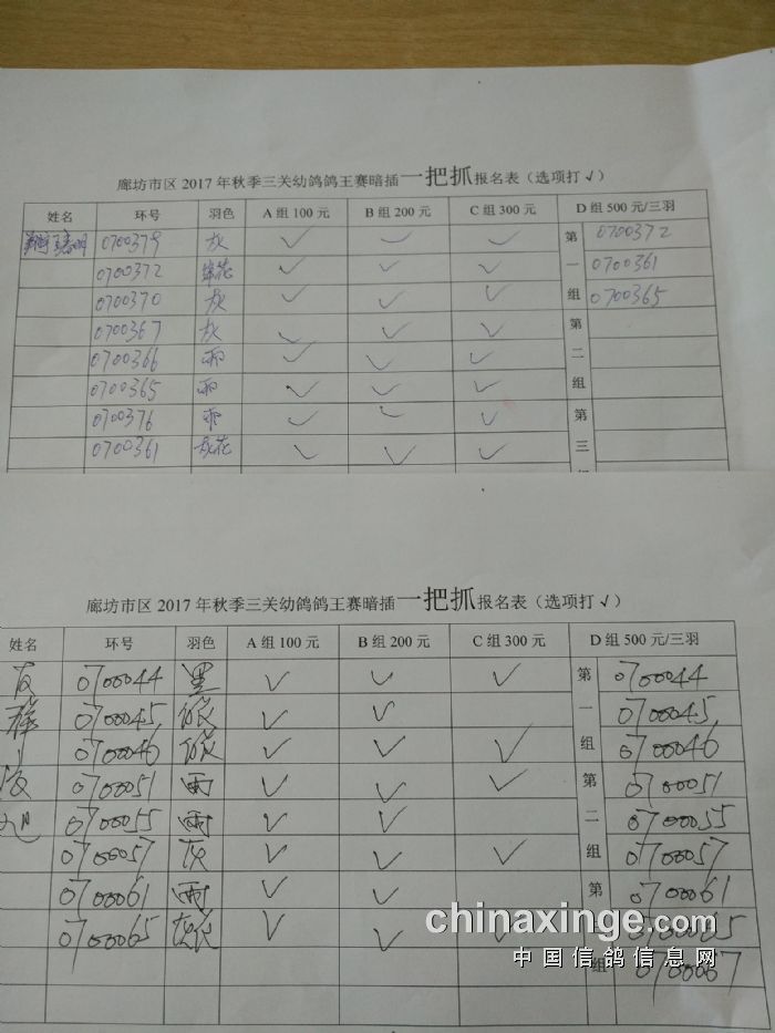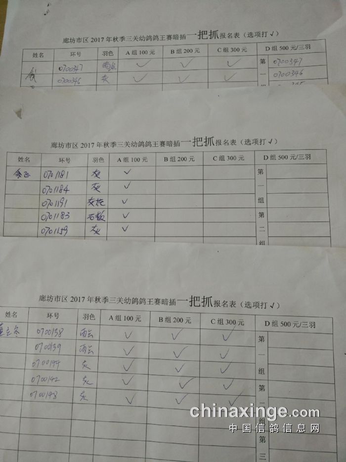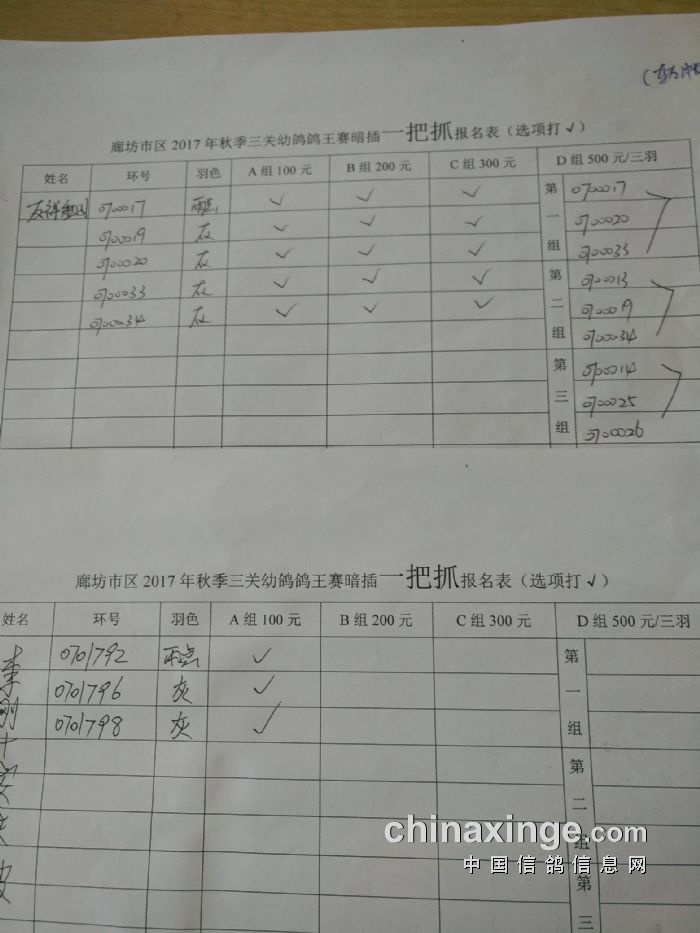 廊坊市区2017年秋季特比环暗插一把抓报名表原始单