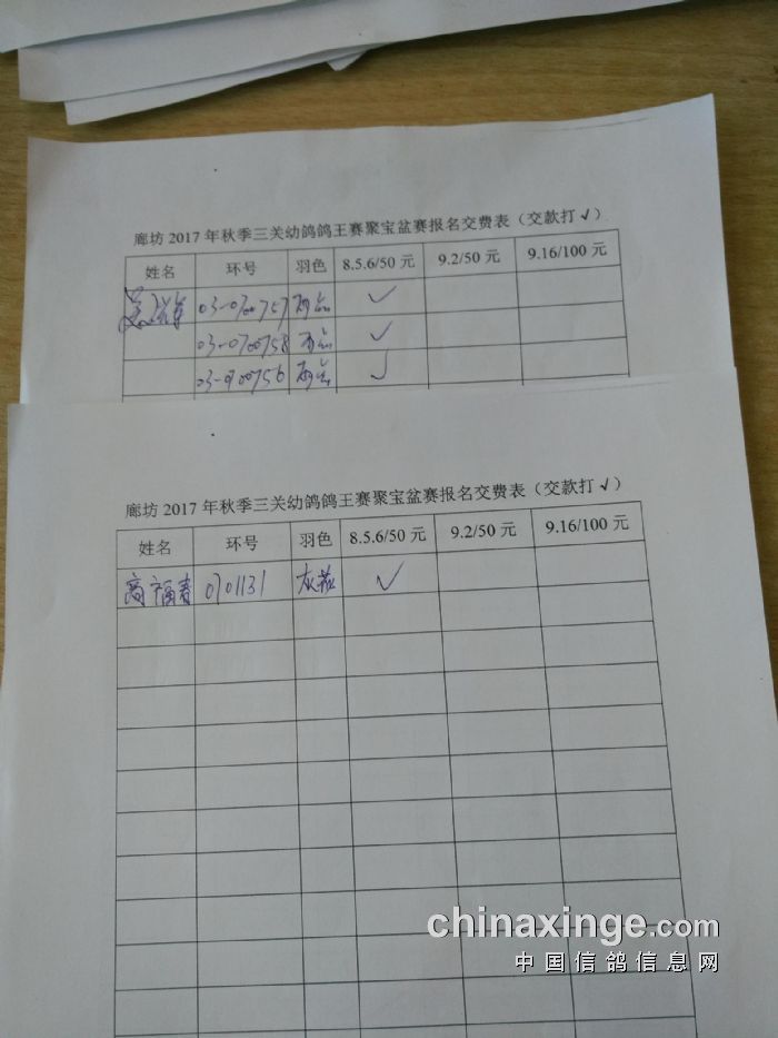 廊坊市区2017年秋季特比环聚宝盆报名表原始单