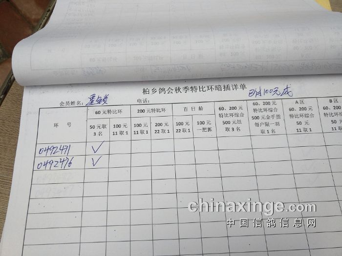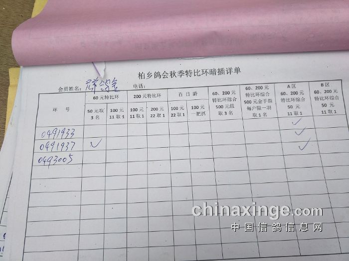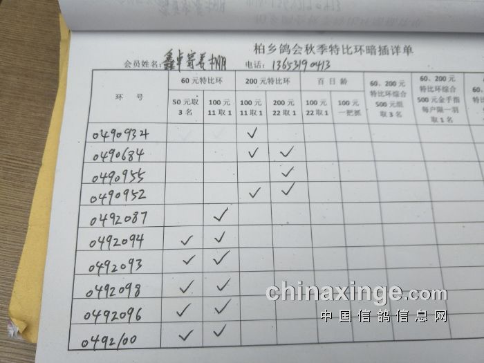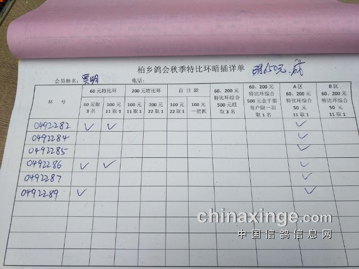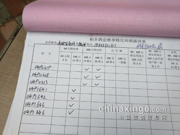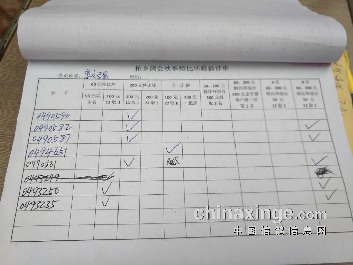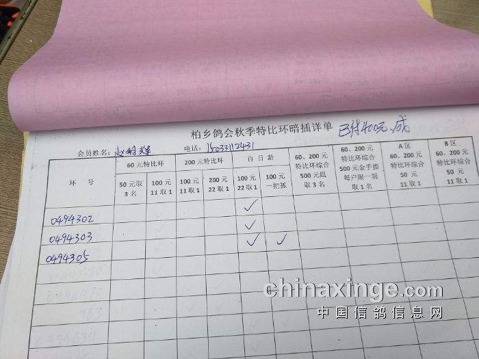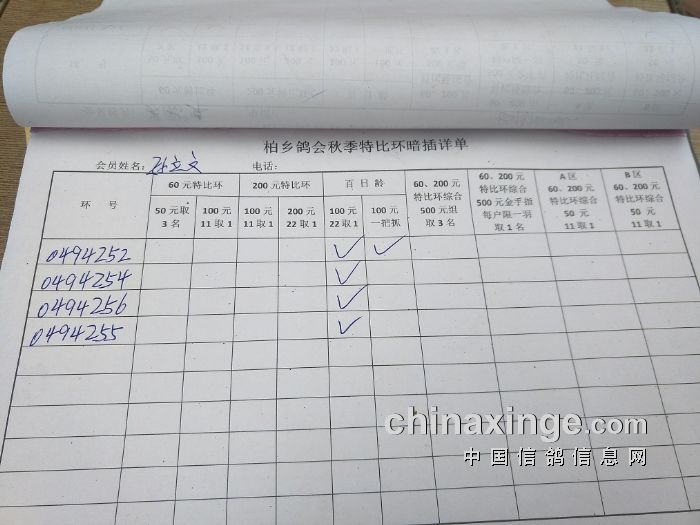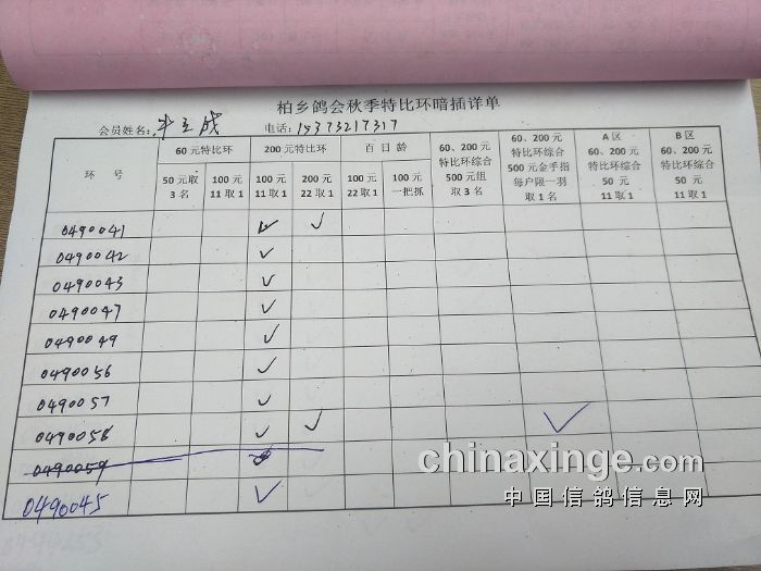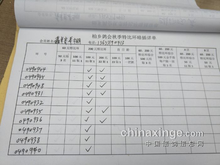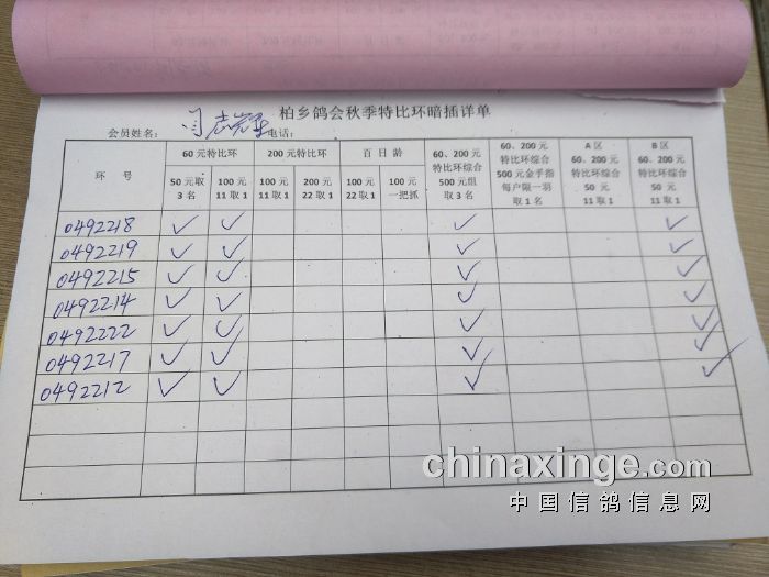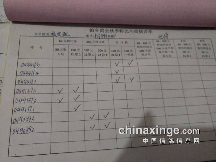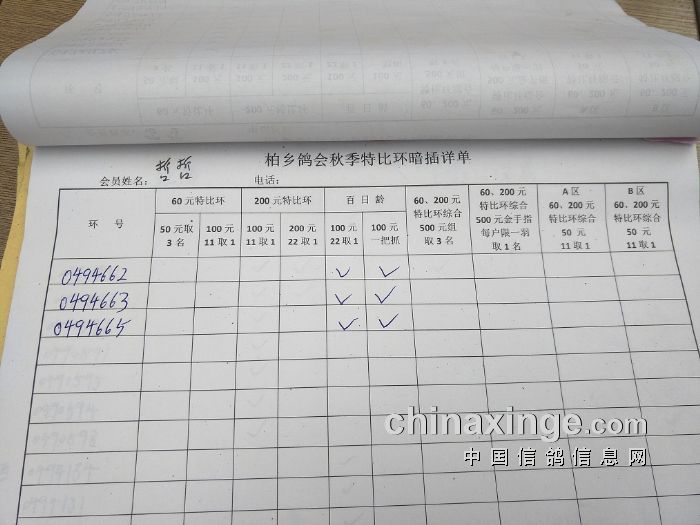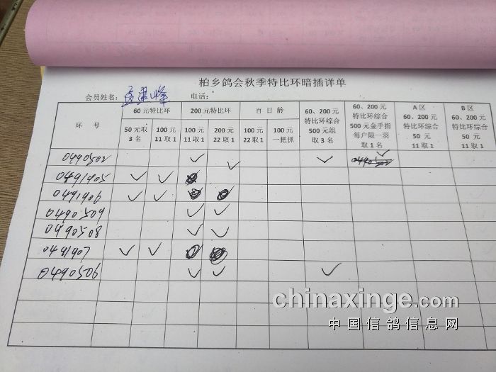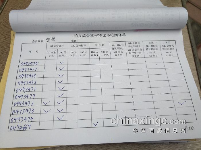 柏乡鸽会2017秋特比环暗插图片请鸽友核对,如有错误请及时联系鸽会13653391332。核对时间截止到8月25日晚上,届时将公布暗插羽数及奖金分配。