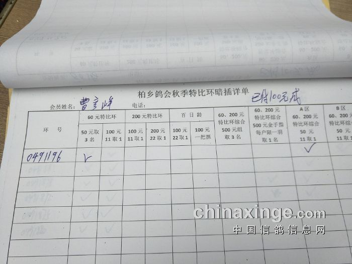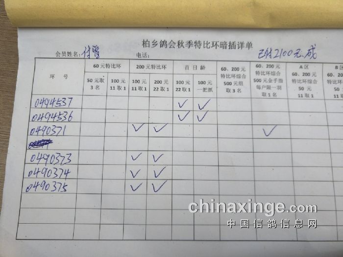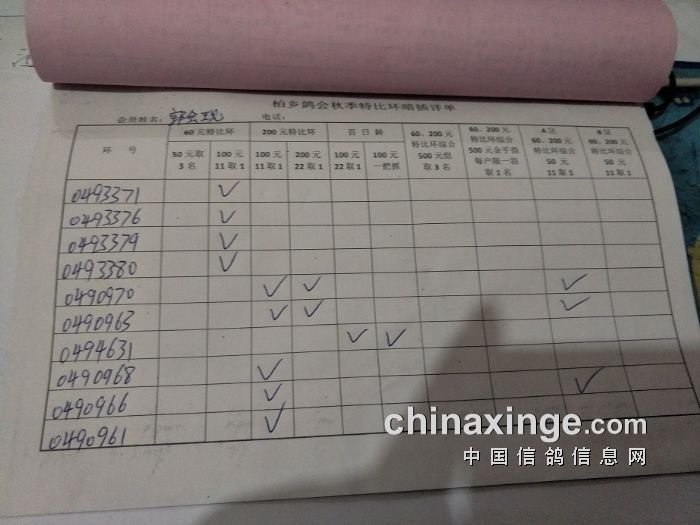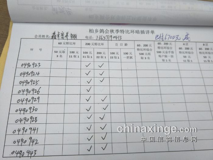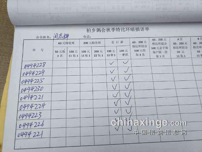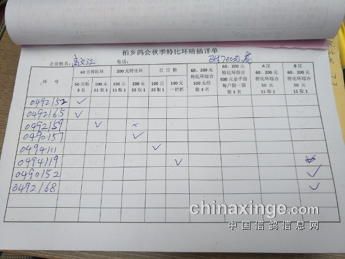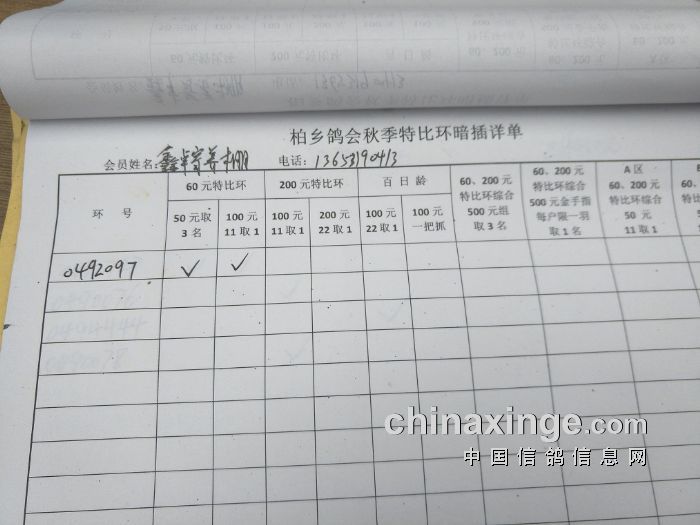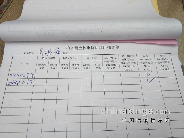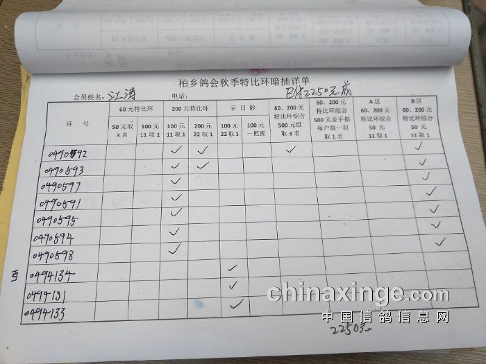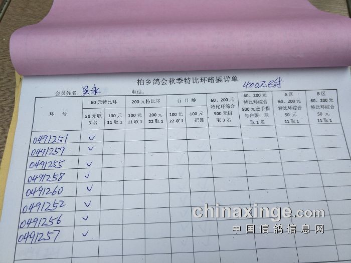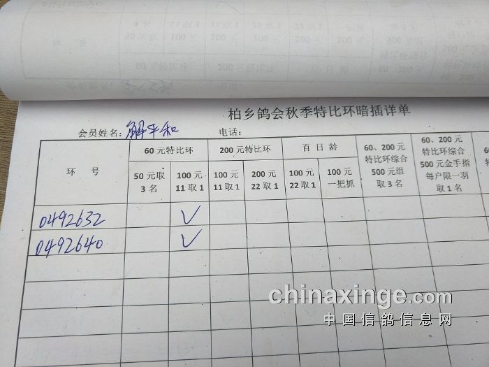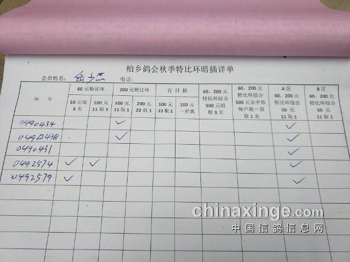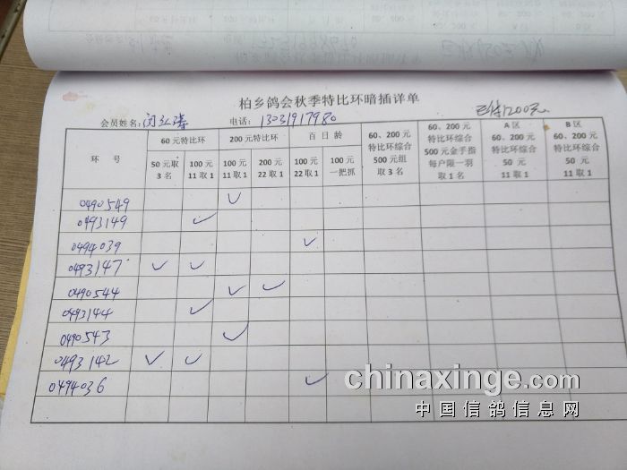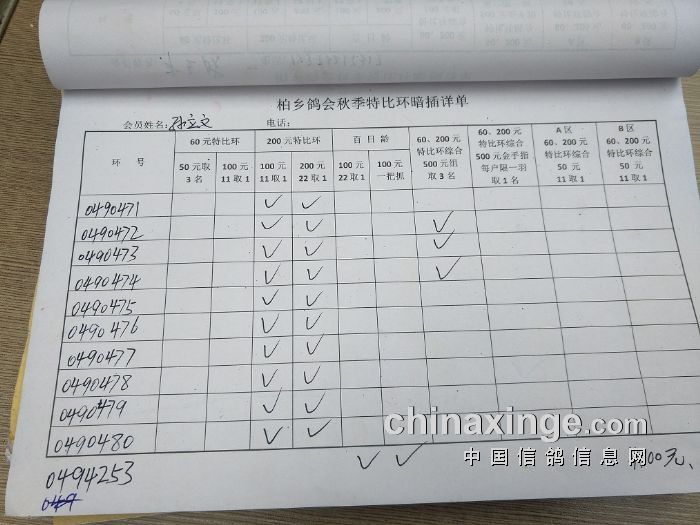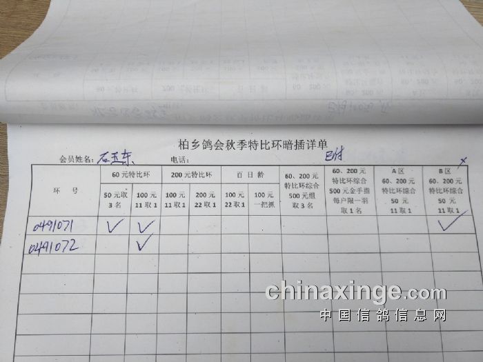 柏乡鸽会2017秋特比环暗插图片请鸽友核对,如有错误请及时联系鸽会13653391332。核对时间截止到8月25日晚上,届时将公布暗插羽数及奖金分配。