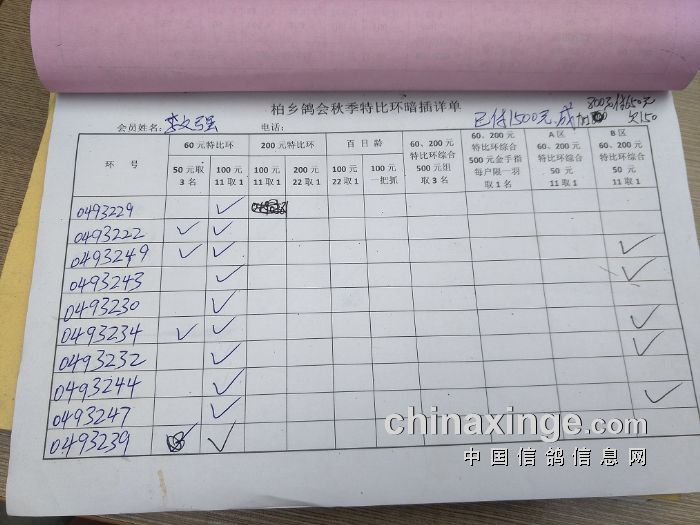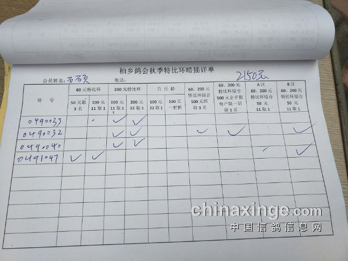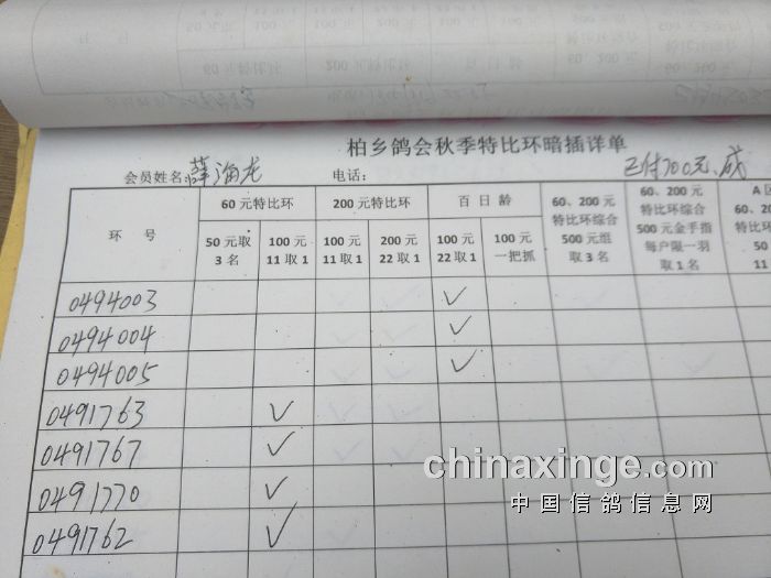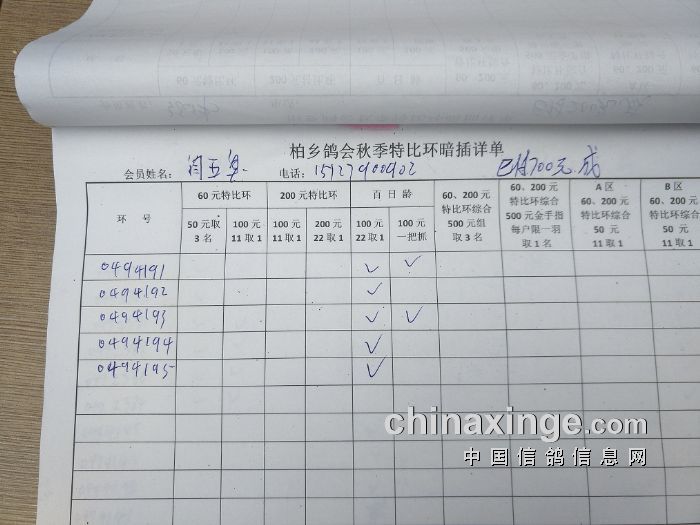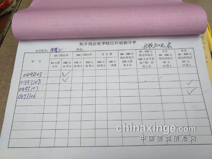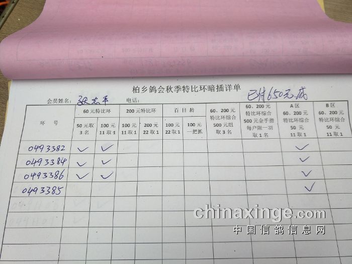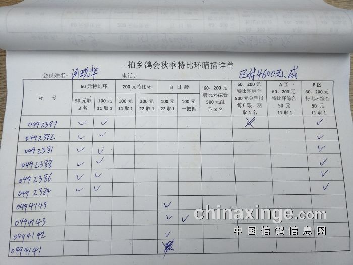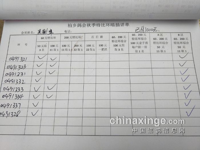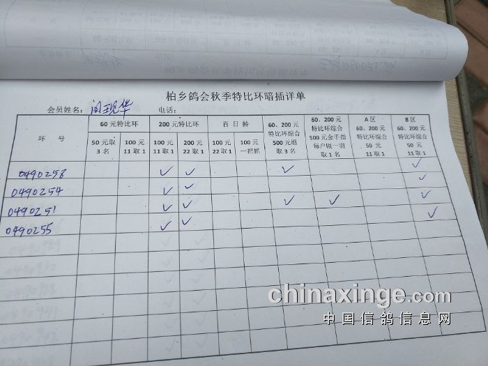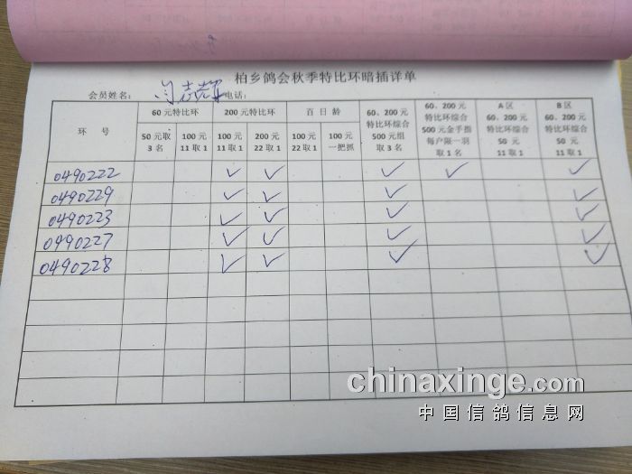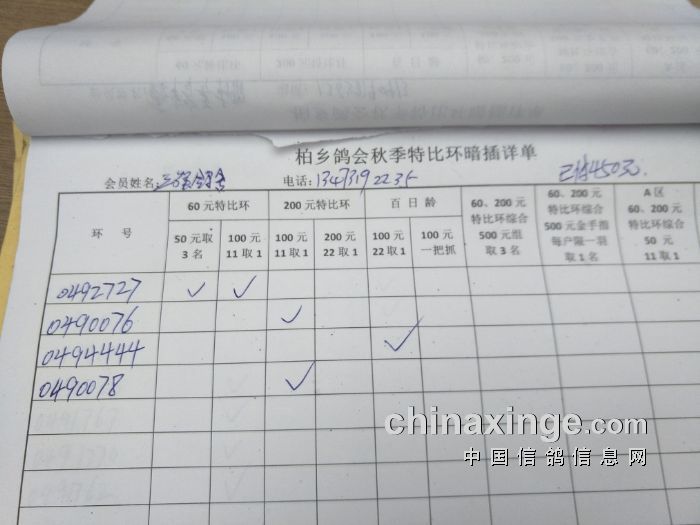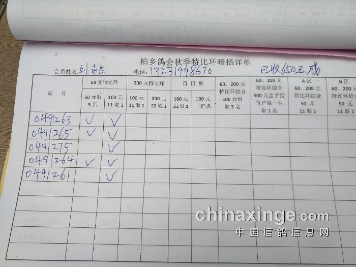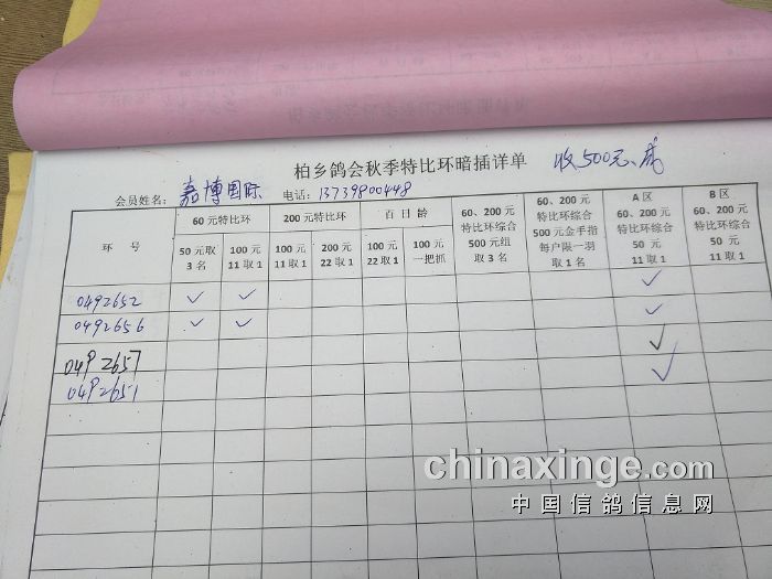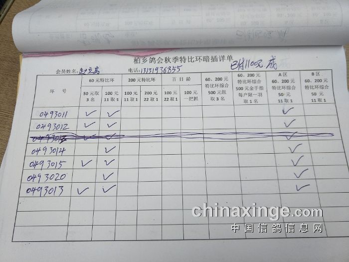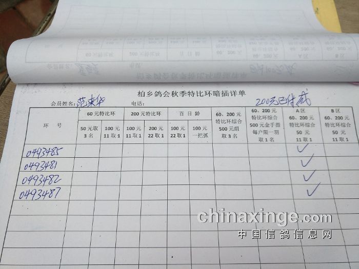 柏乡鸽会2017秋特比环暗插图片请鸽友核对,如有错误请及时联系鸽会13653391332。核对时间截止到8月25日晚上,届时将公布暗插羽数及奖金分配。