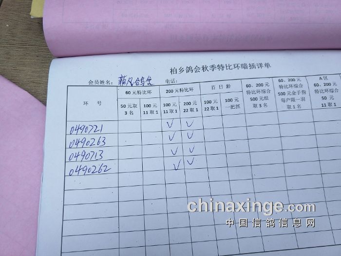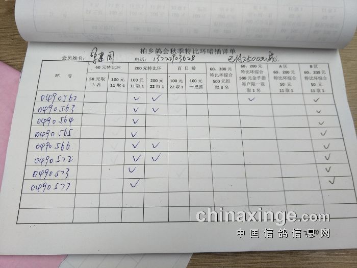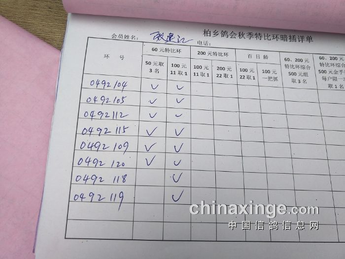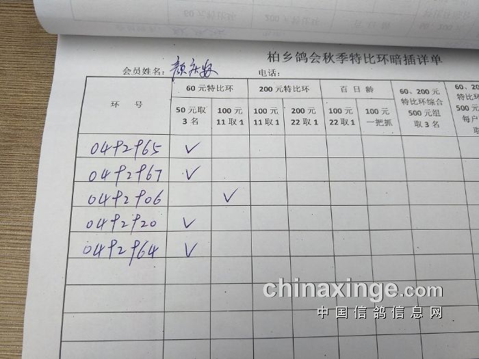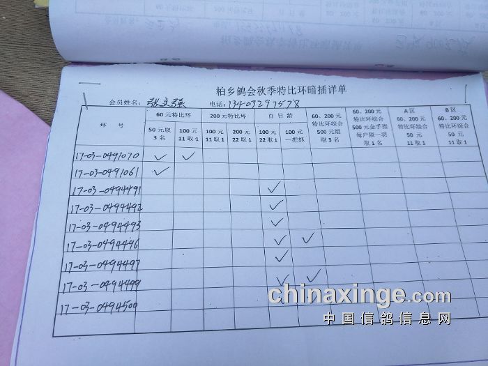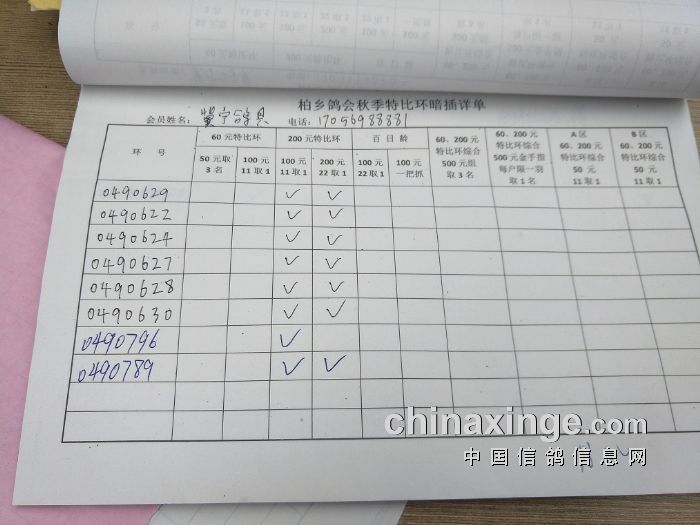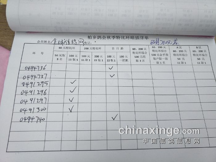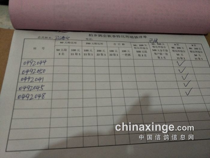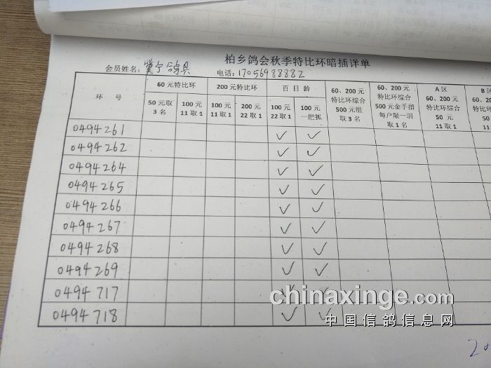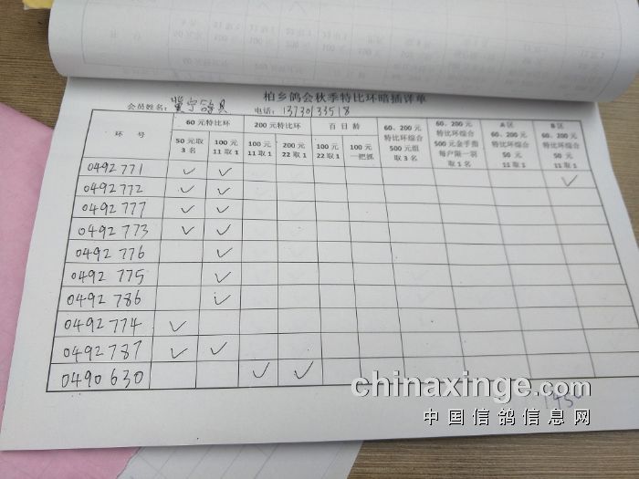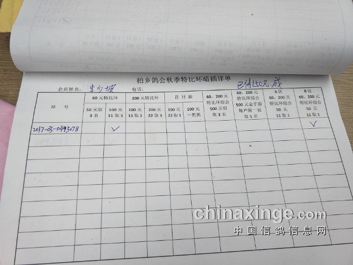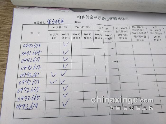 柏乡鸽会2017秋特比环暗插图片请鸽友核对,如有错误请及时联系鸽会13653391332。核对时间截止到8月25日晚上,届时将公布暗插羽数及奖金分配。