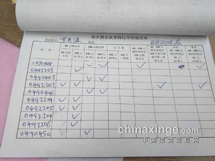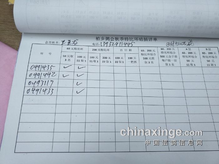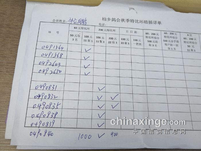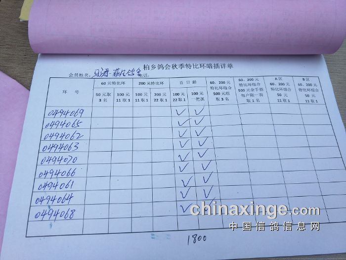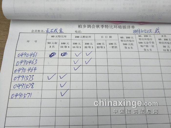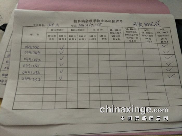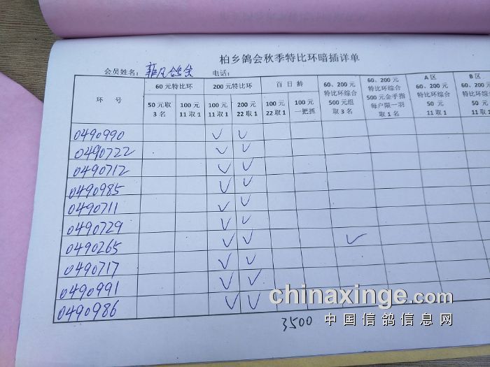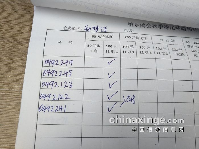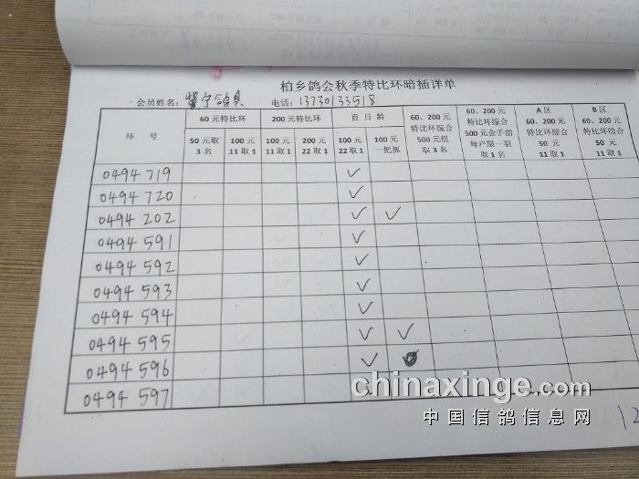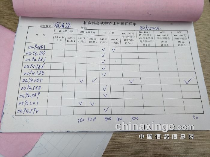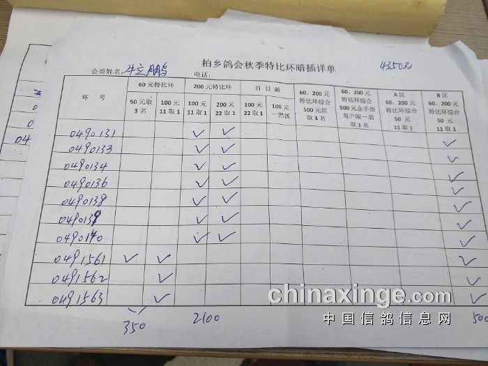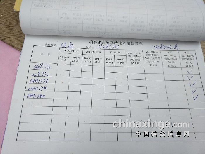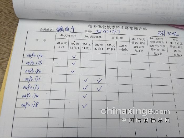 柏乡鸽会2017秋特比环暗插图片请鸽友核对,如有错误请及时联系鸽会13653391332。核对时间截止到8月25日晚上,届时将公布暗插羽数及奖金分配。