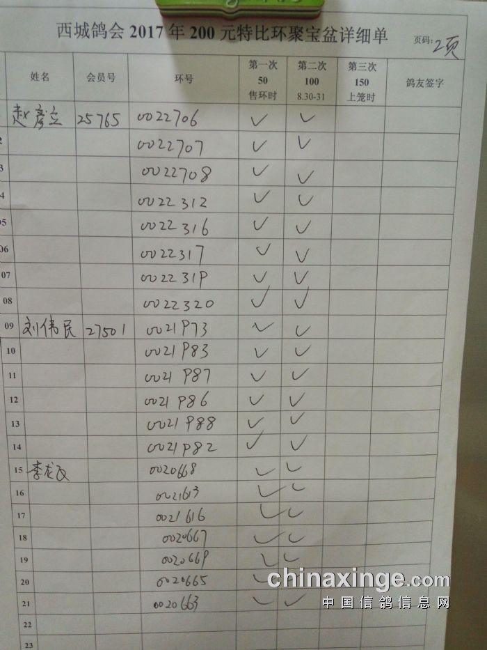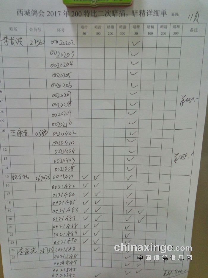 西城鸽会17年200元特别共售2330枚,取168名