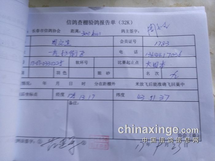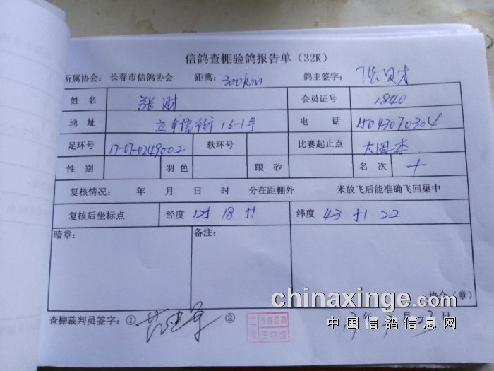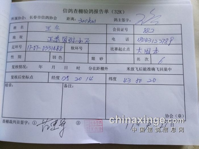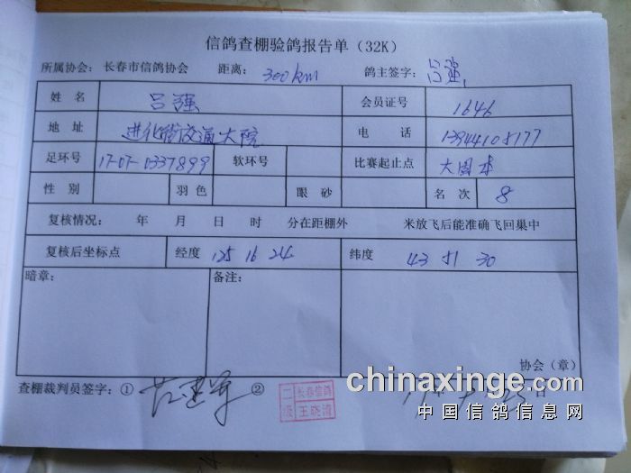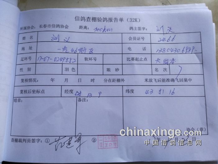 2017年秋季300公里比赛暨大奖第一关6-10名验棚