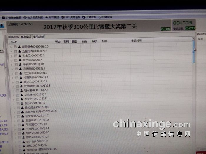 2017年秋季300公里比赛暨大奖第二关集鸽