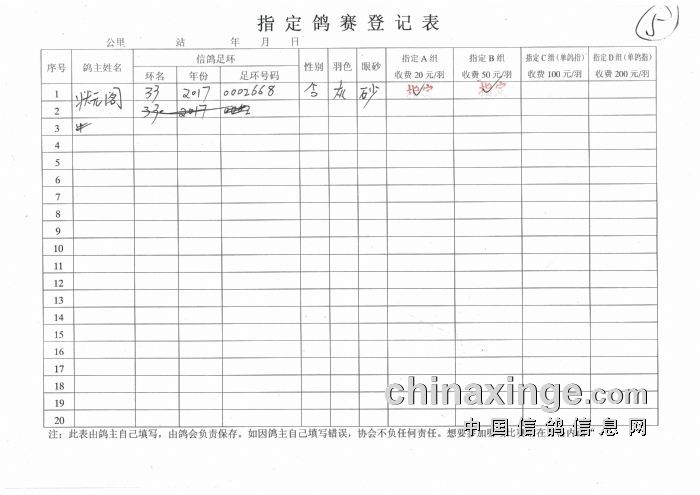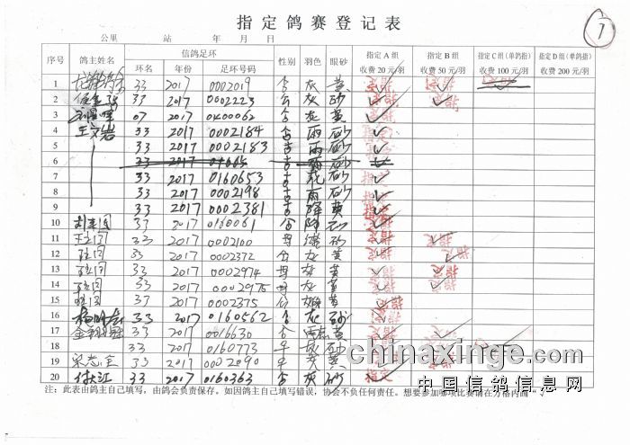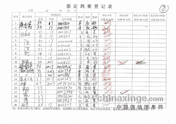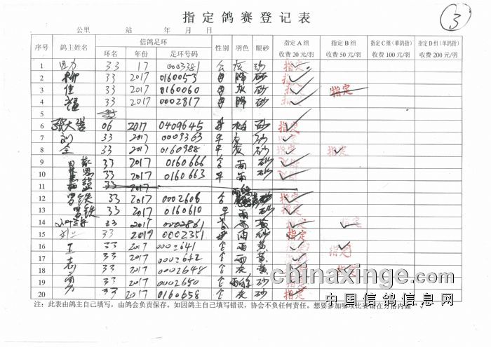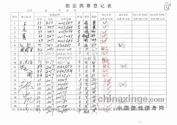 2017年秋季350公里扎鲁特旗西站指定鸽原始单据