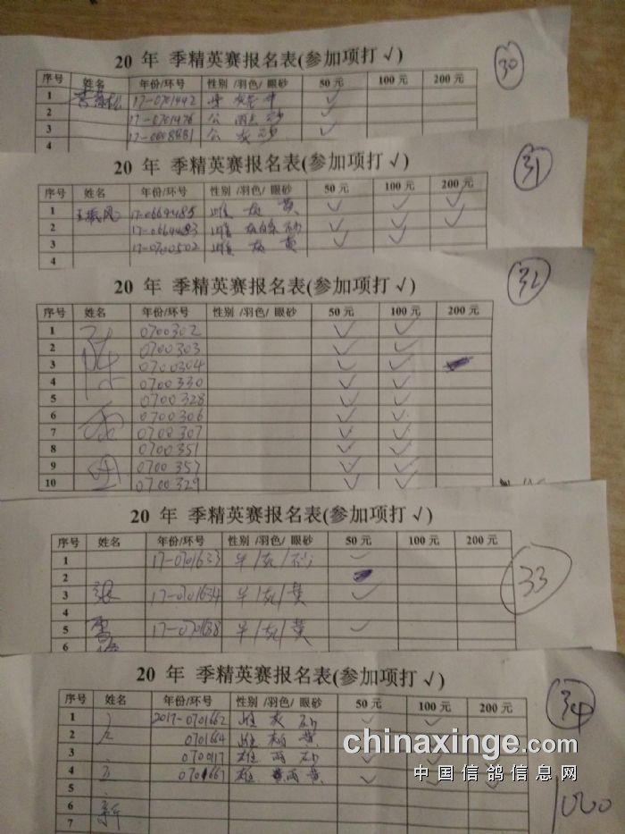 廊坊市区2017年秋季300公里精英赛报名表(以原始单为准)