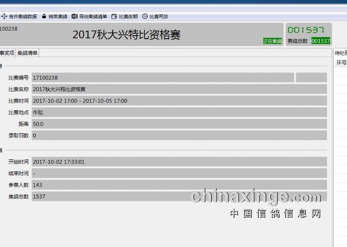 25年大兴“金洲杯”千元环一关有效归巢(按棚号)