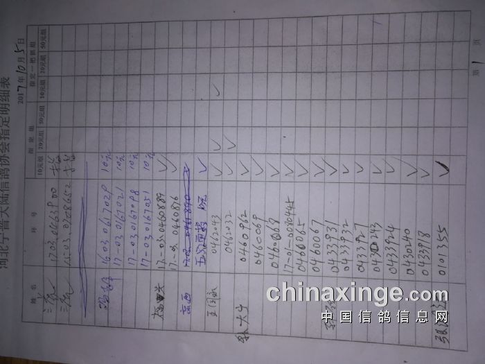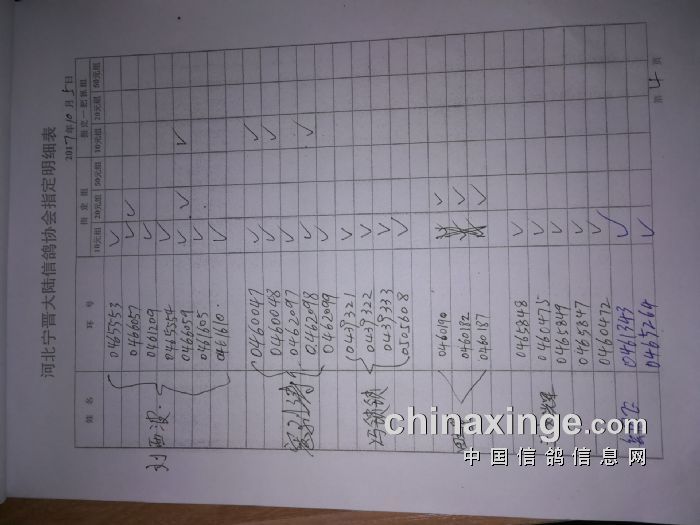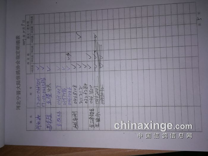 宁晋县大陆信鸽协会2017年秋季150公里测试赛指定单