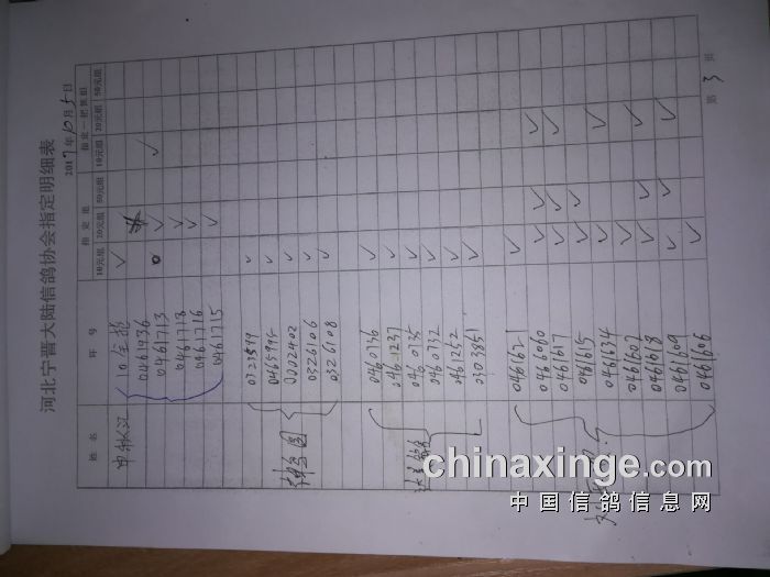 宁晋大陆信鸽协会25年秋200公里清丰成绩