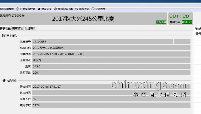 大兴鸽会240公里比赛集鸽羽数
