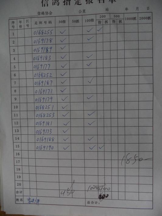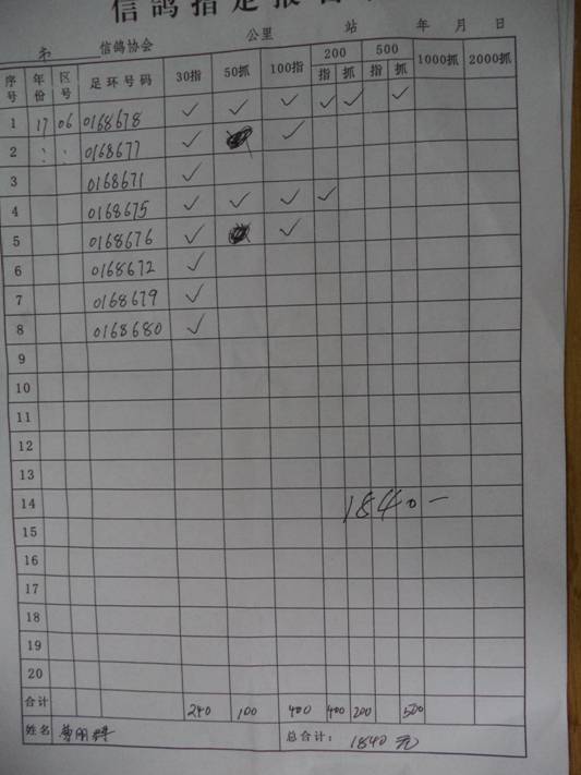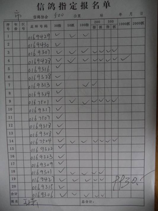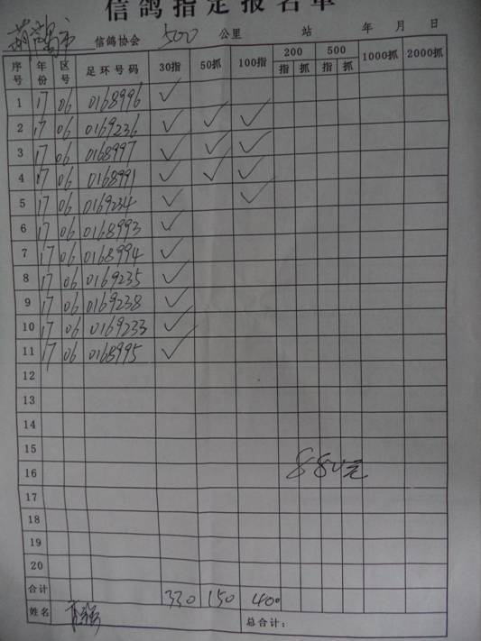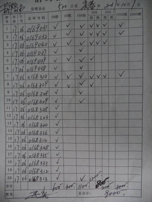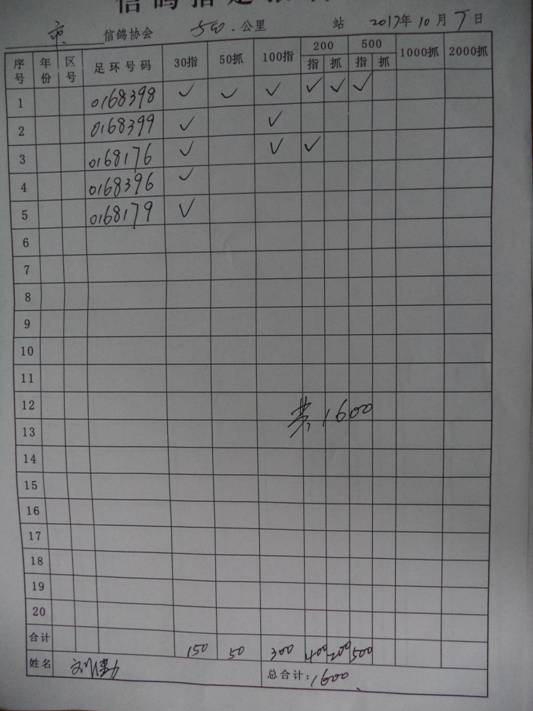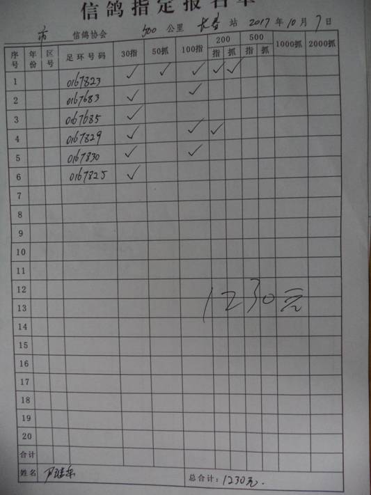 2017秋500公里指定鸽名单4
