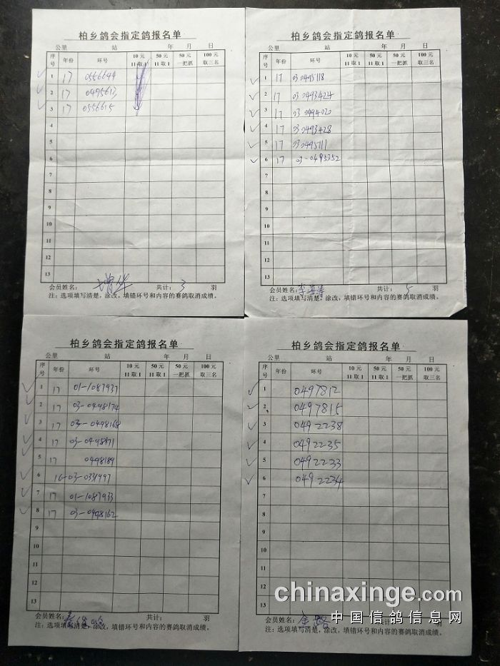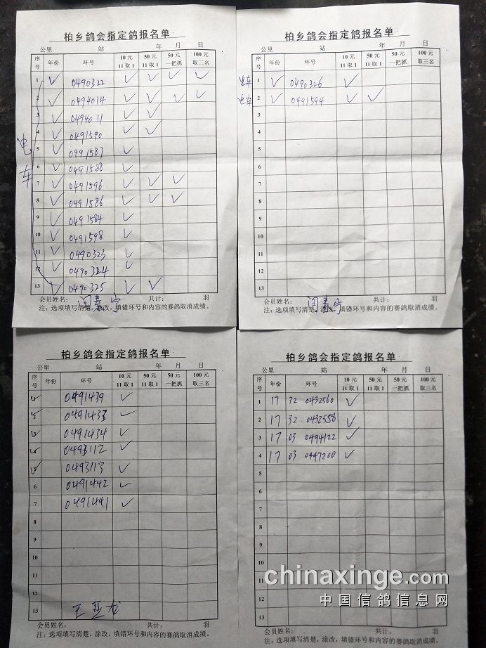 柏乡鸽会千公里第七名、第八名 冯贞禄