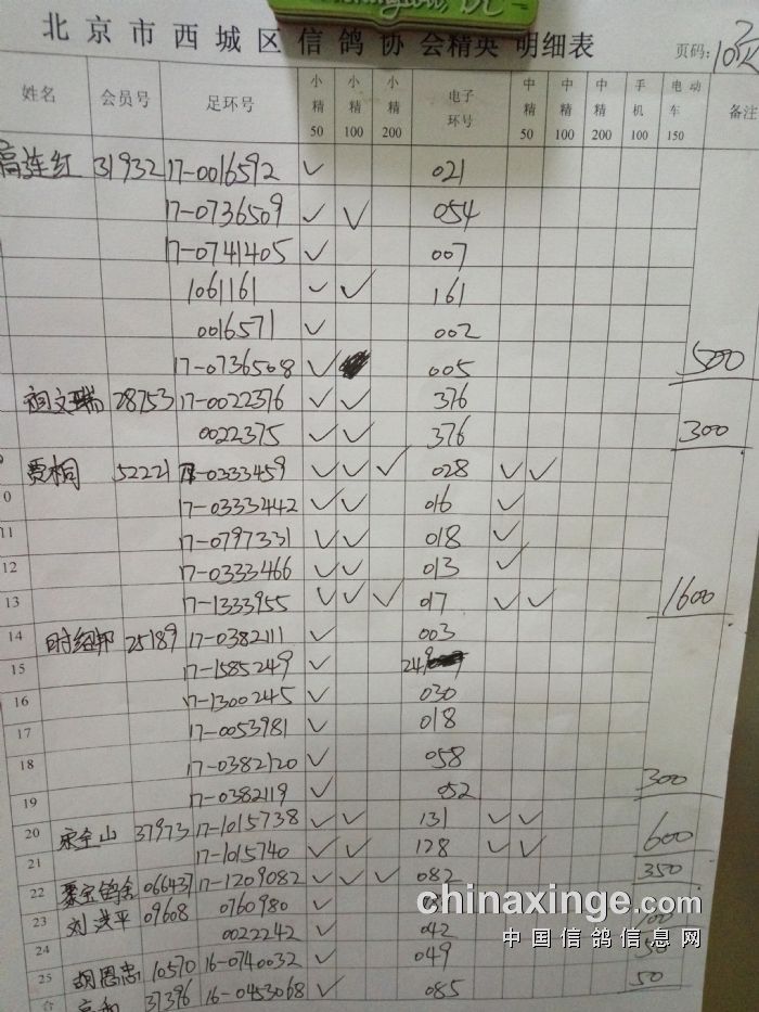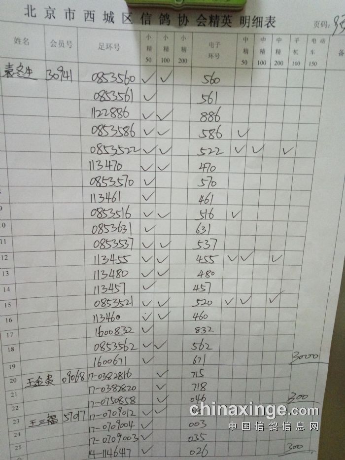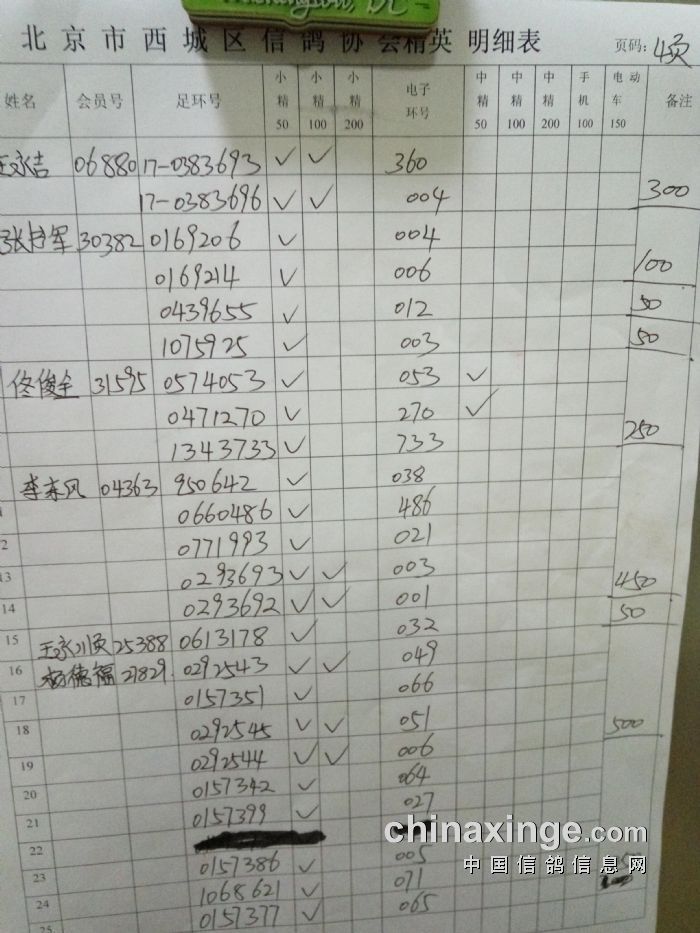 中精英、50元65羽、100元66羽、200元3羽、手机16羽 电动车3羽