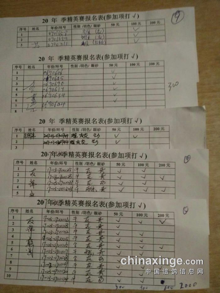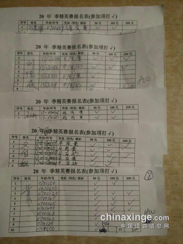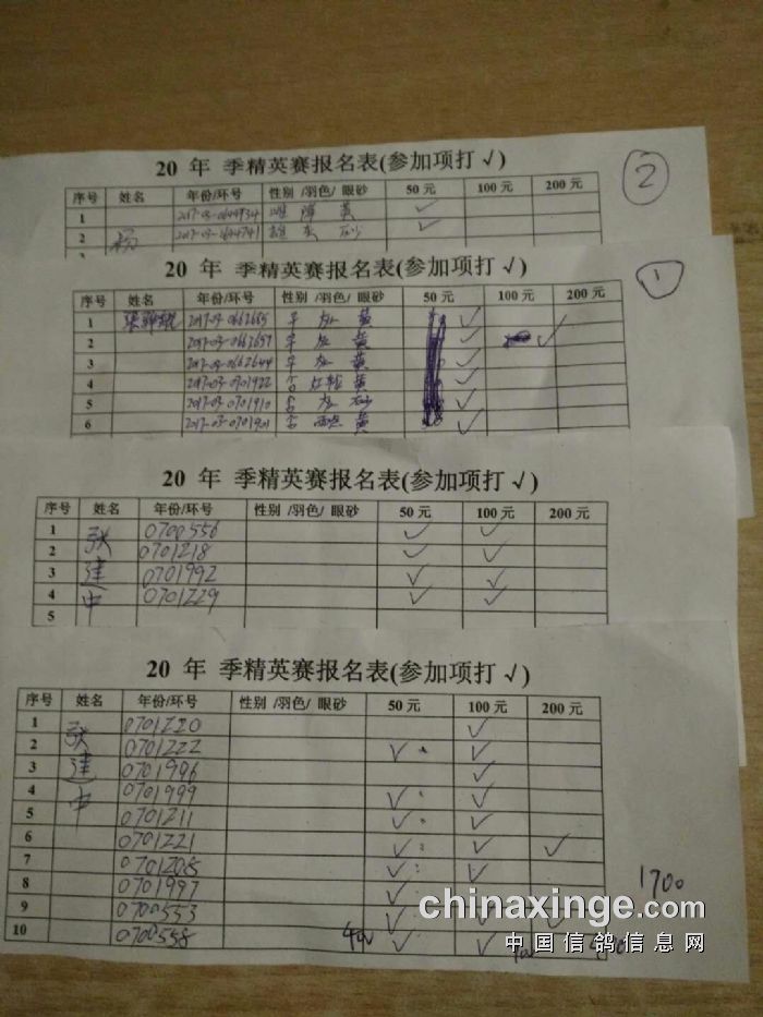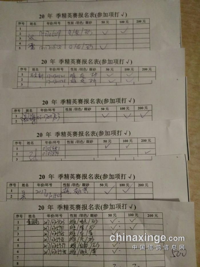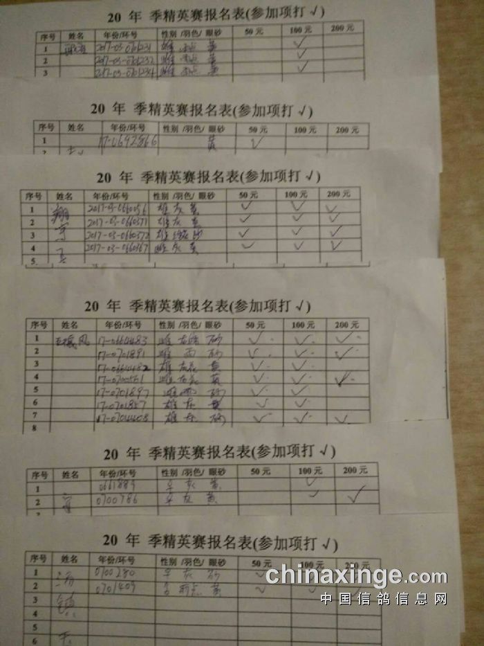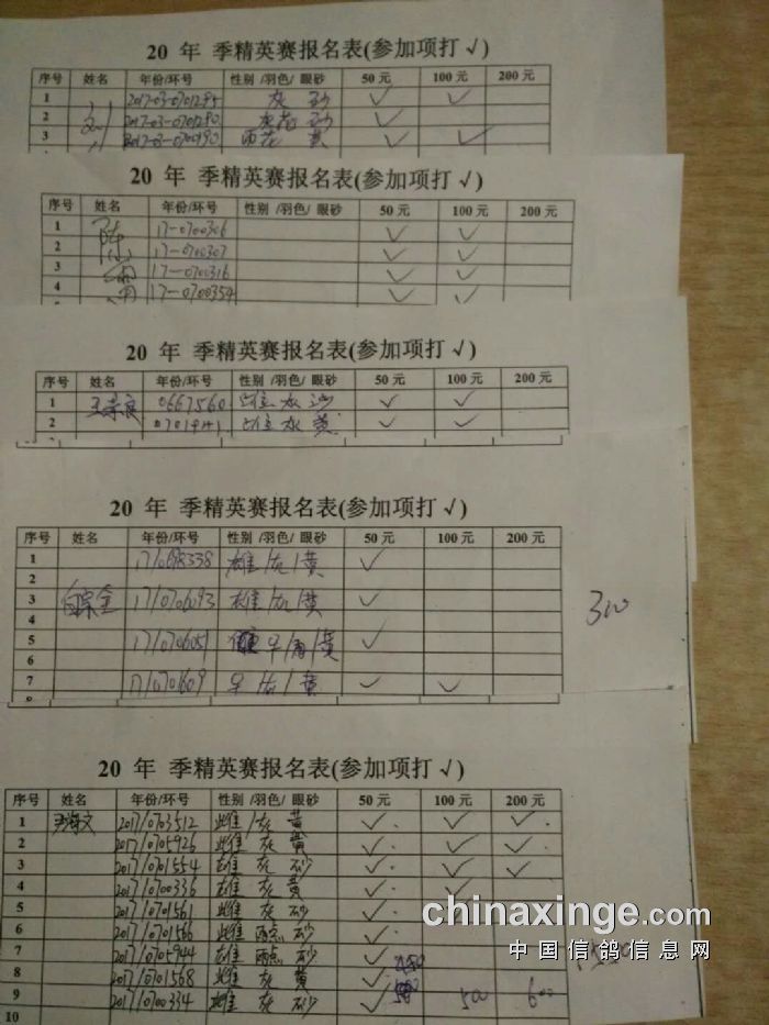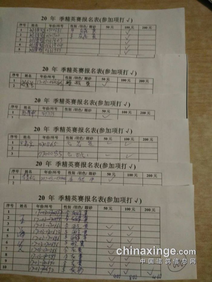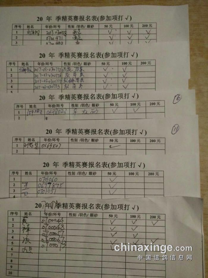 廊坊市区2017年秋季第三关370公里精英赛报名表(以原始单为准)