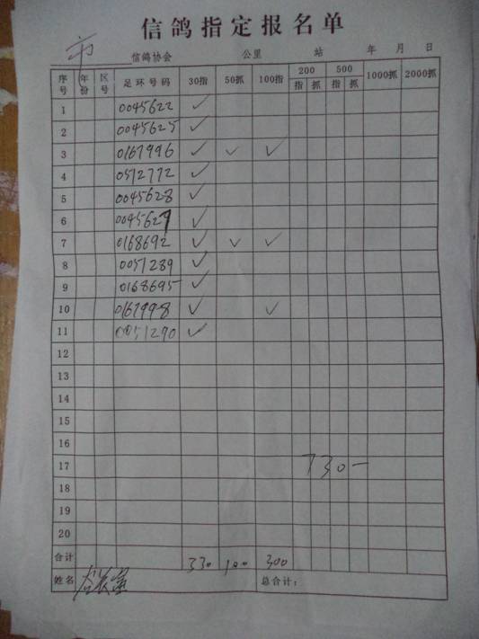 2017秋550公里指定鸽名单2