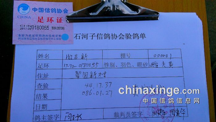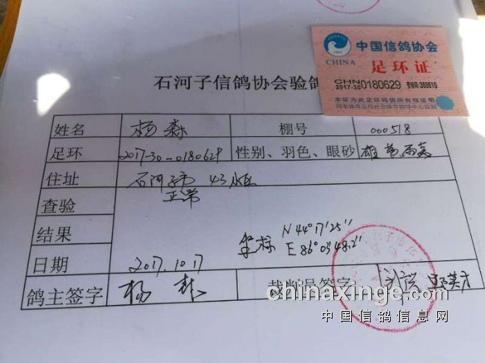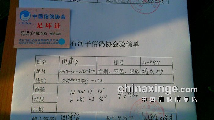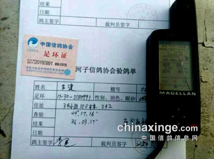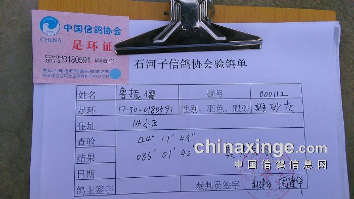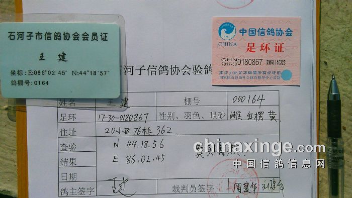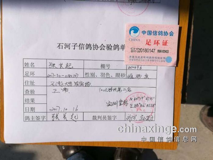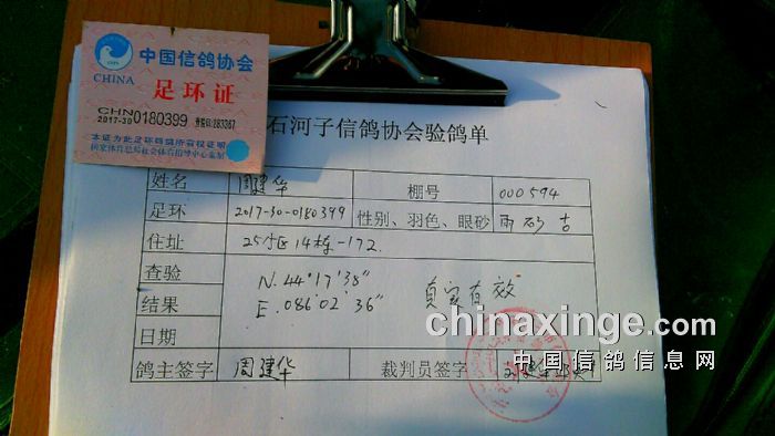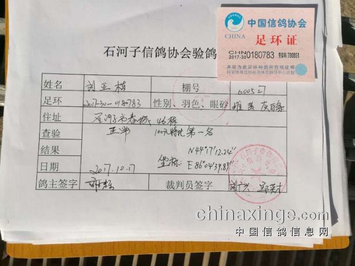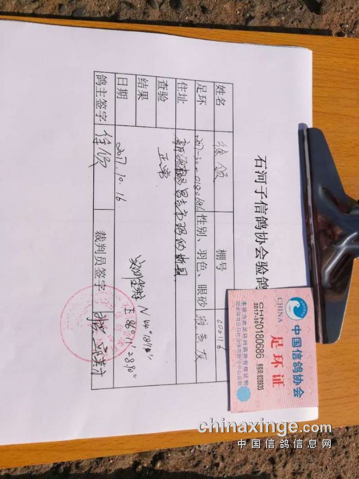 石河子信鸽协会2017年秋季100元特比环前十名验鸽照片